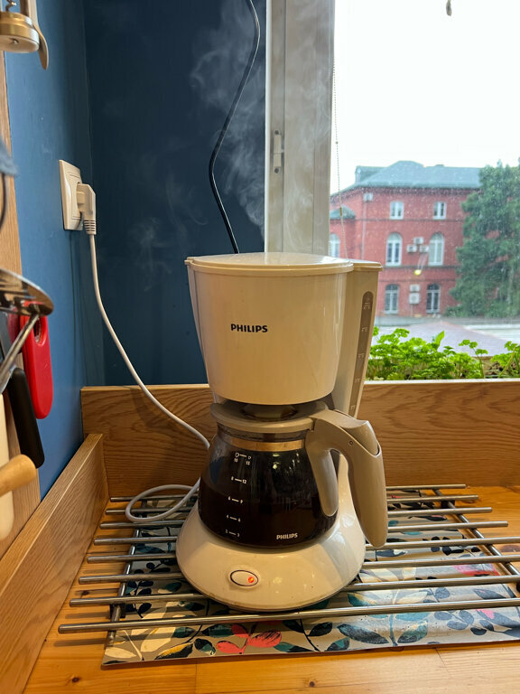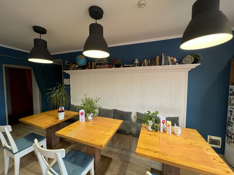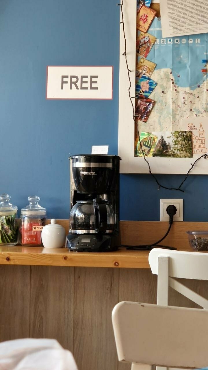 Хостел находится на центральной улице- с одной стороны все рядом, магазины, столовые, вокзал 5 минут, но для меня шумно, даже закрытые окна не спасали. Техника на кухне вся работала, кондиционер в номере тоже работал. Каждое утро администратор включала кофеварку. Вполне нормальный кофе. Минус — ‘не работает терминал’. Ещё бы хотелось добавить полотенце маленькое для рук/лица, т.к. приходилось бегать всегда с банным большим умываться.