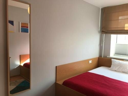 Плюсы : Приветливый администратор, который ответит на все ваши вопросы. Чистота. Достаточно пространства в комнате и в кухне. Очень удачное расположение вблизи магазинов, кафе, вокзала и остановок общественного транспорта. В санузлах имеются общее жидкое и зубная паста. Минусы: Тонкие стены, хорошая слышимость. Плесень в душевой.