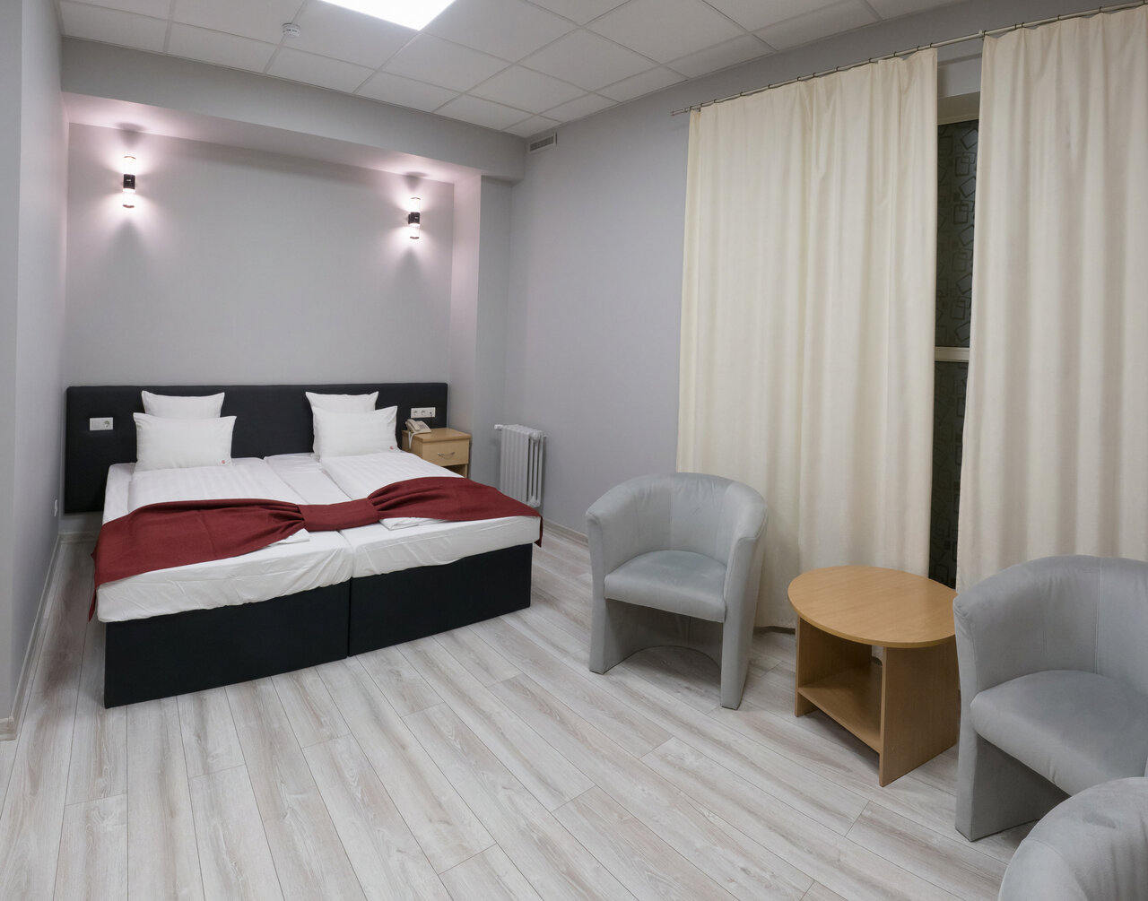 Номера категории «полулюкс» - сочетание уюта и комфорта в современном отеленедалеко от центра города!Возможно полноценное трехместное размещение.В стоимость проживания входит посещение банного клуба 'Лёд' с 10:00 до 15:00.* Соблюдаются возрас