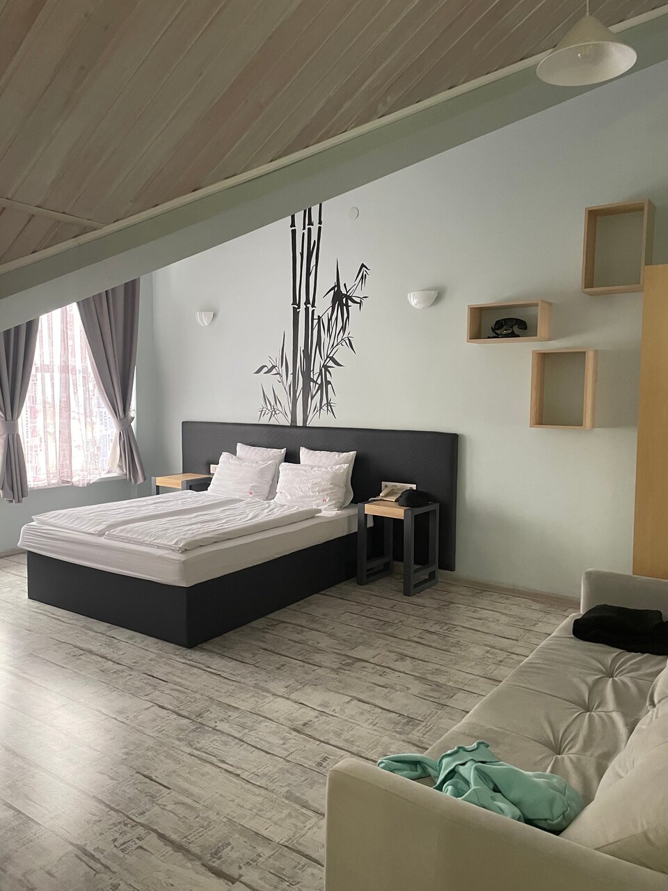 Понравился отель. Очень удачно, что включены банный комплекс и игровой центр. Вкусные и красивые завтраки. Единственный минус в одном из двух номеров присутствовал запах в ванной