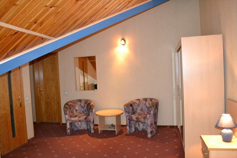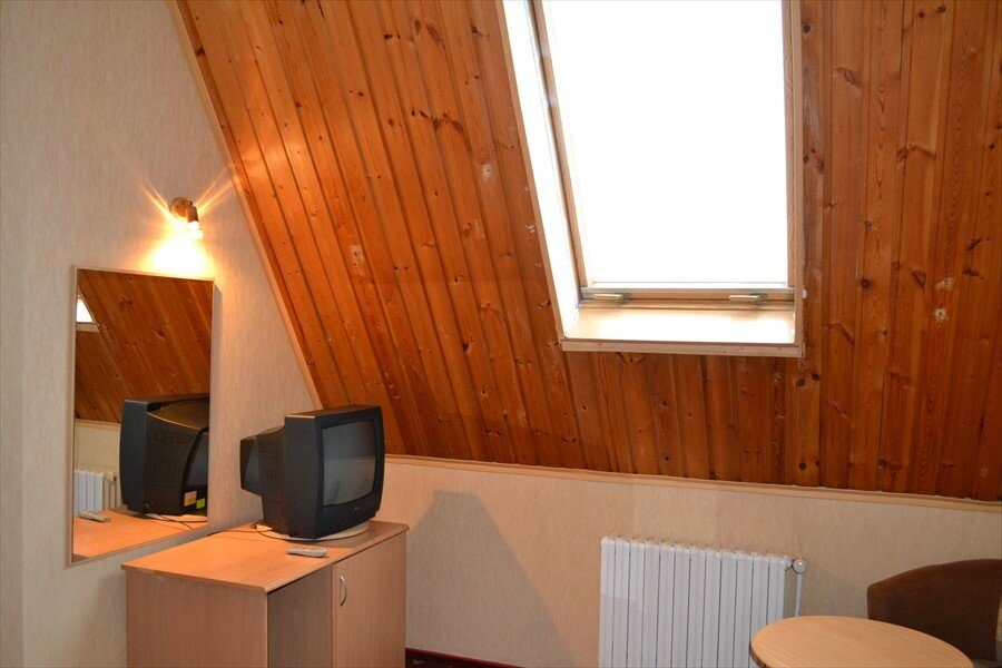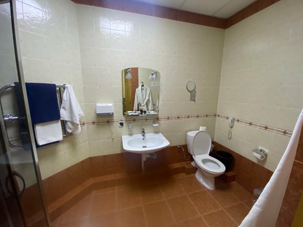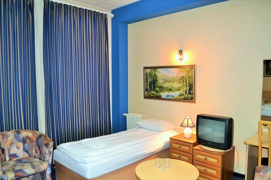 Огромный номер, в городе низкая цена на такси, поэтому отдаленность гостиницы от центра полностью компенсируется. Отличный банный комплекс (баня, сауна, бассейн и т.д.) Есть кафе, цены ниже Московских раза в три. Рекомендую.