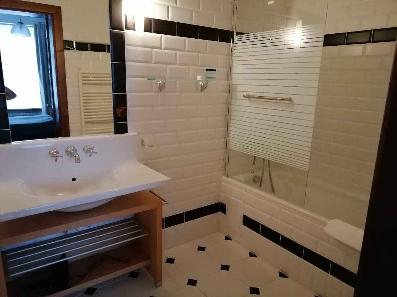 Мы выбрали очень скромный номер — кровать, вешалки/крючки и хороший санузел. Но нам большего и не нужно было — всё время гуляли. Администраторы всегда были готовы помочь — например, проводить в гладильную комнату или разрешить оставить вещи, поскольку мы уезжали вечером, один раз мы попросили нож. Очень хороший был телевизор, но мы его почти не смотрели…