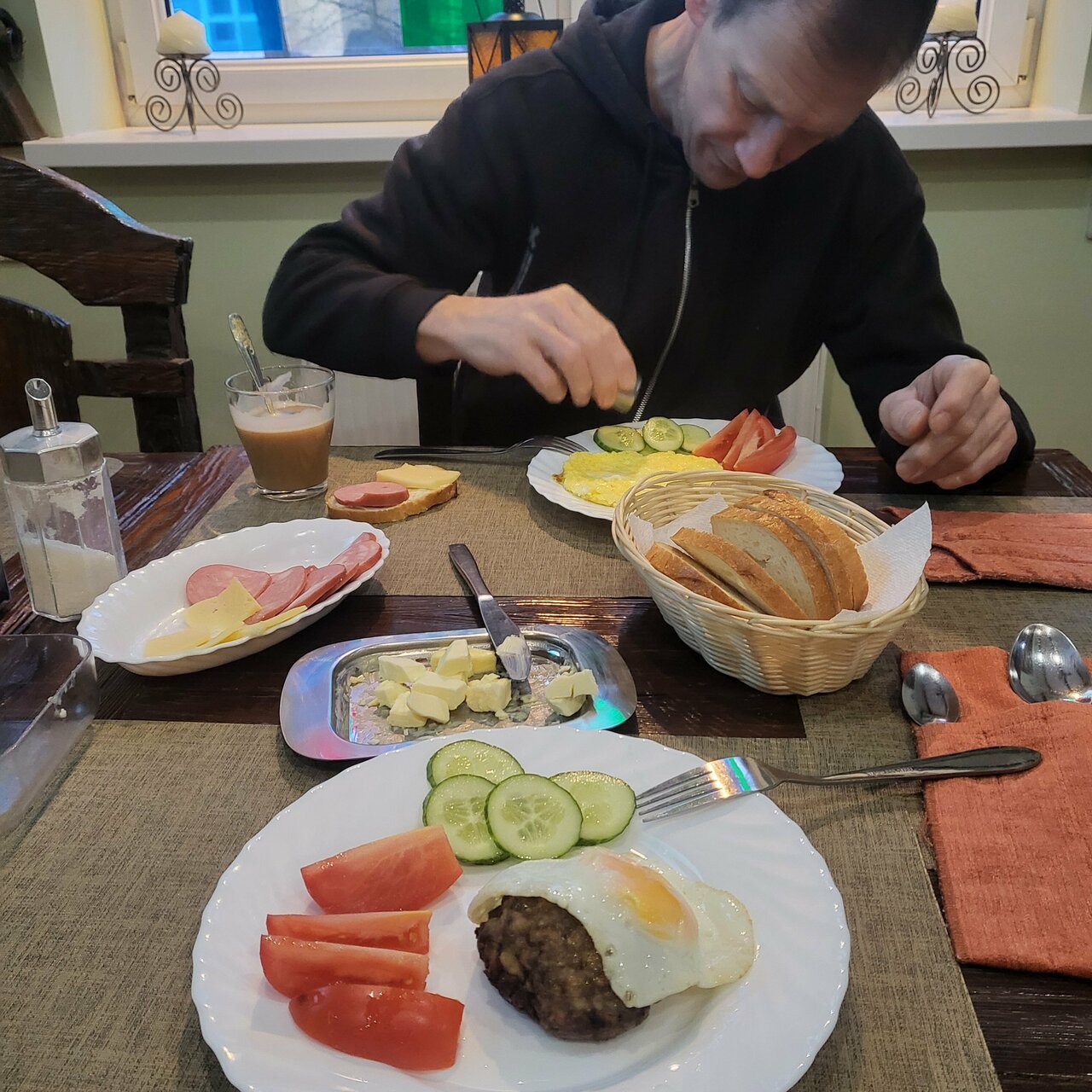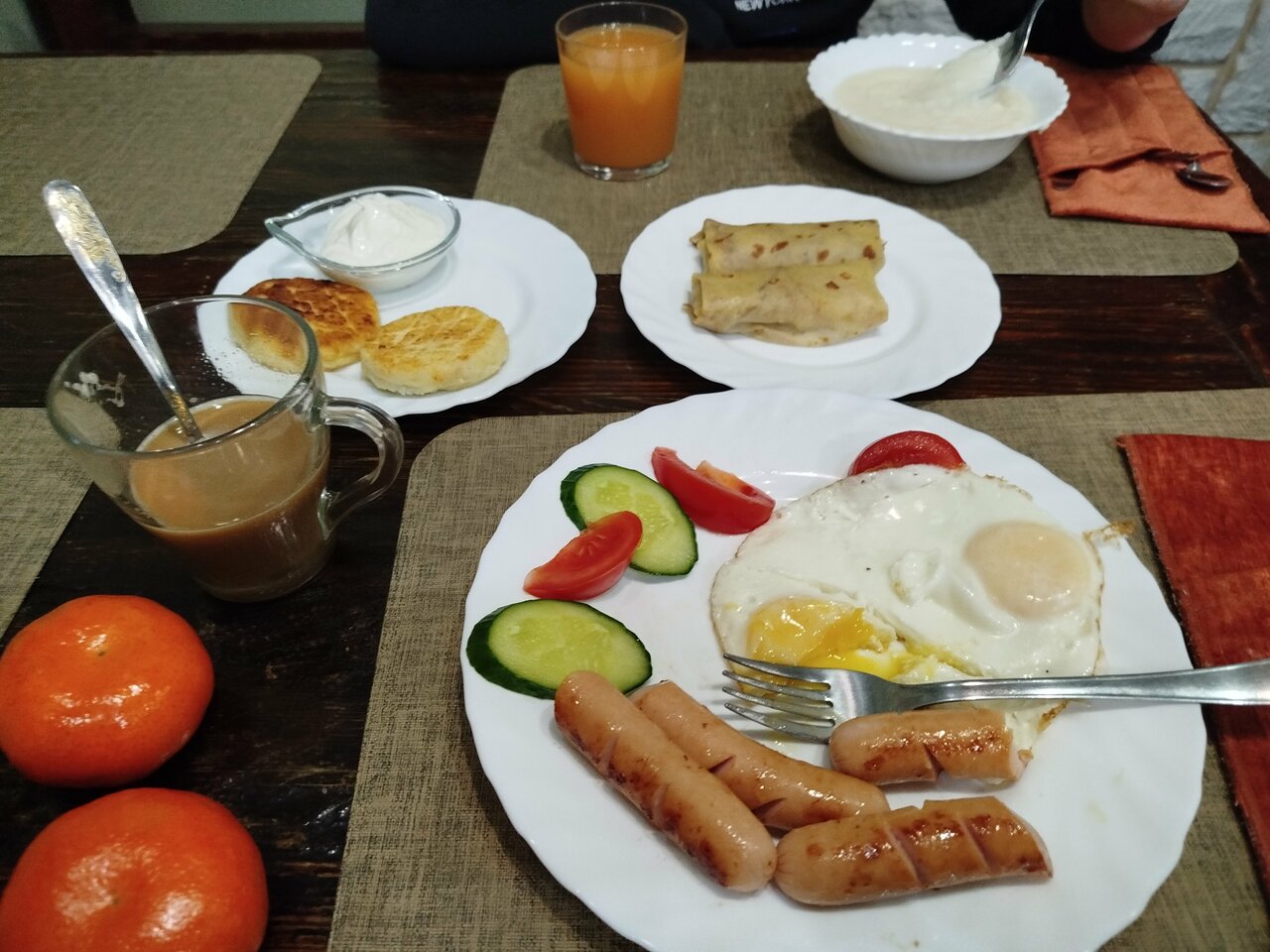Отель сам на 15 номеров, есть сауна, мангал, веранда, задний зелёный двор. Не большая парковка. Завтраки чудо, очень сытные и вкусные, ещё бы их немного разнообразить, было бы вообще чудно. Везде чисто, персонал внимательный. Рекомендую.