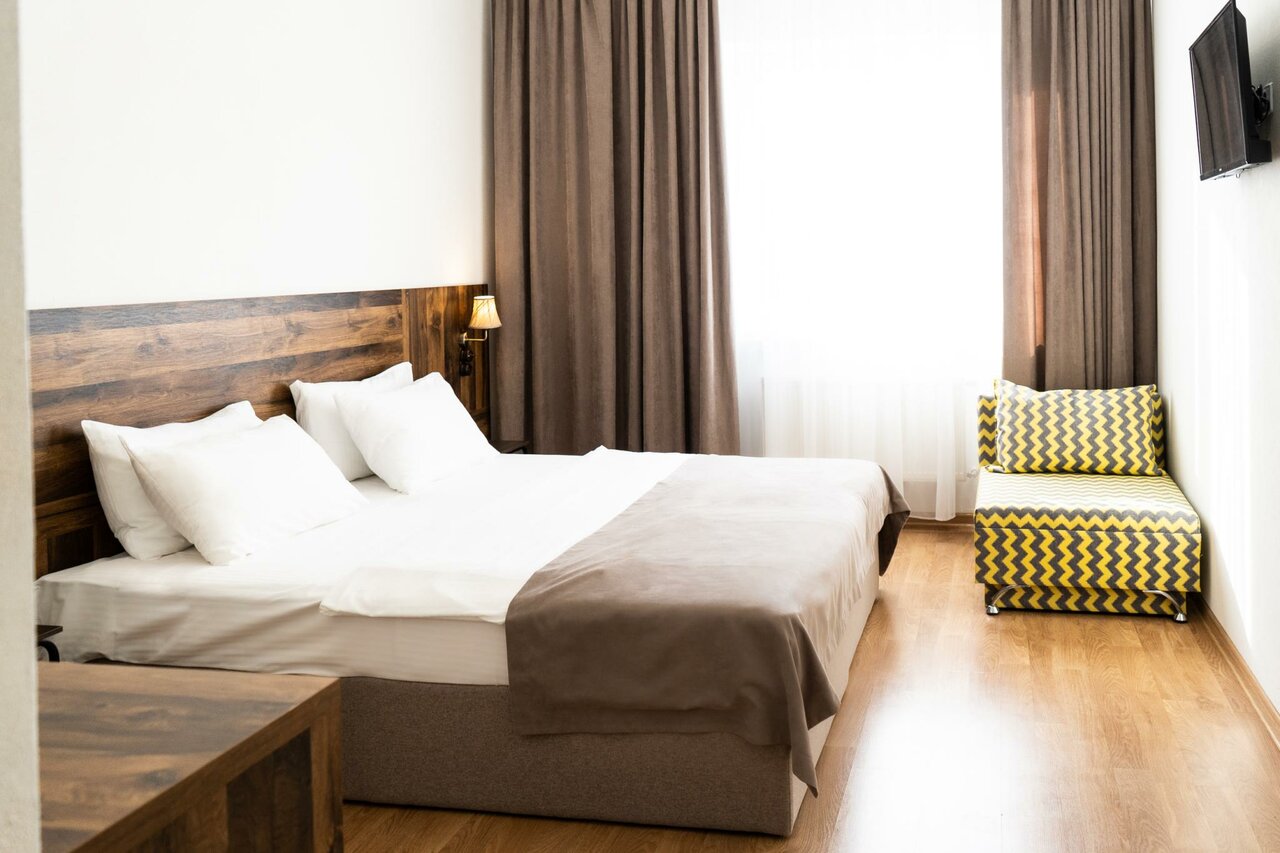 Замечательный отельчик,есть всё самое необходимое в номере,чайник холодильник,фен дают на ресепшене,чистенько, своё кафе с бизнес ланчами,вкусными завтраками и нормальными ценами