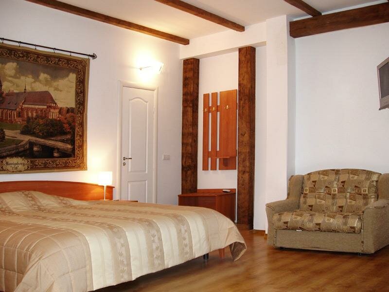 Отель находится в хорошем месте если взяли машину на прокат или приехали на своей. Транспорт ходит, но за неделю поднадоело. Пешком можно дойти конечно до музея янтаря и кафедрального собора, но тяжко… Сам отель хороший, на твёрдую 4. Номер брали полулюкс. Двух комнатный. Удобная кровать. В номере нормальная мебель, диванчик и стулья хорошего качества. Из минусов -завтрак дороговат. Один раз кушали. В номере чашки, чайник, фен дали по запросу позже. Имейте ввиду. При заселении его не выдают автоматически.