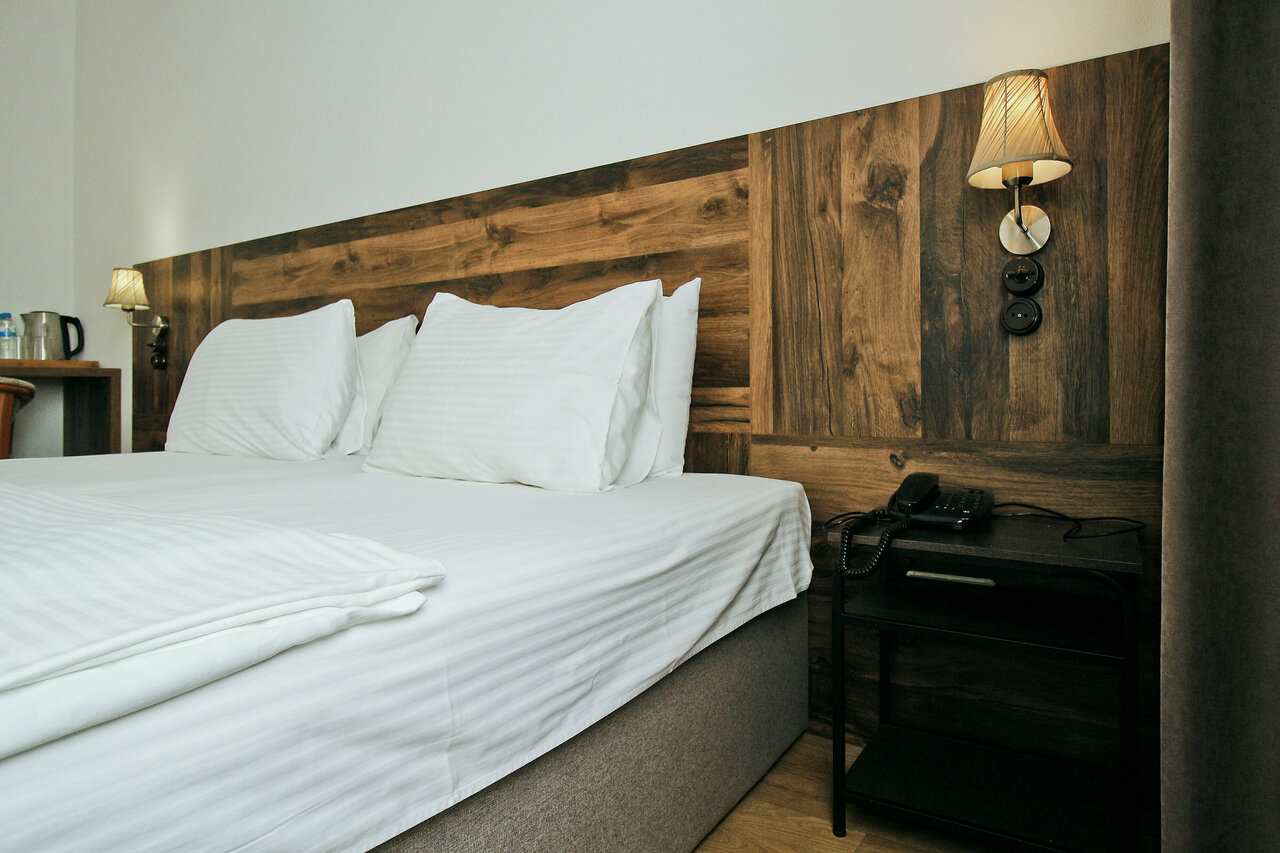 Проживание в номере этой категории является идеальным вариантом для тех, кто любит современный интерьер и большое пространство.Комната оборудована двуспальной кроватью с прикроватными тумбами, шкафом-купе, зеркалом и журнальным столиком.
