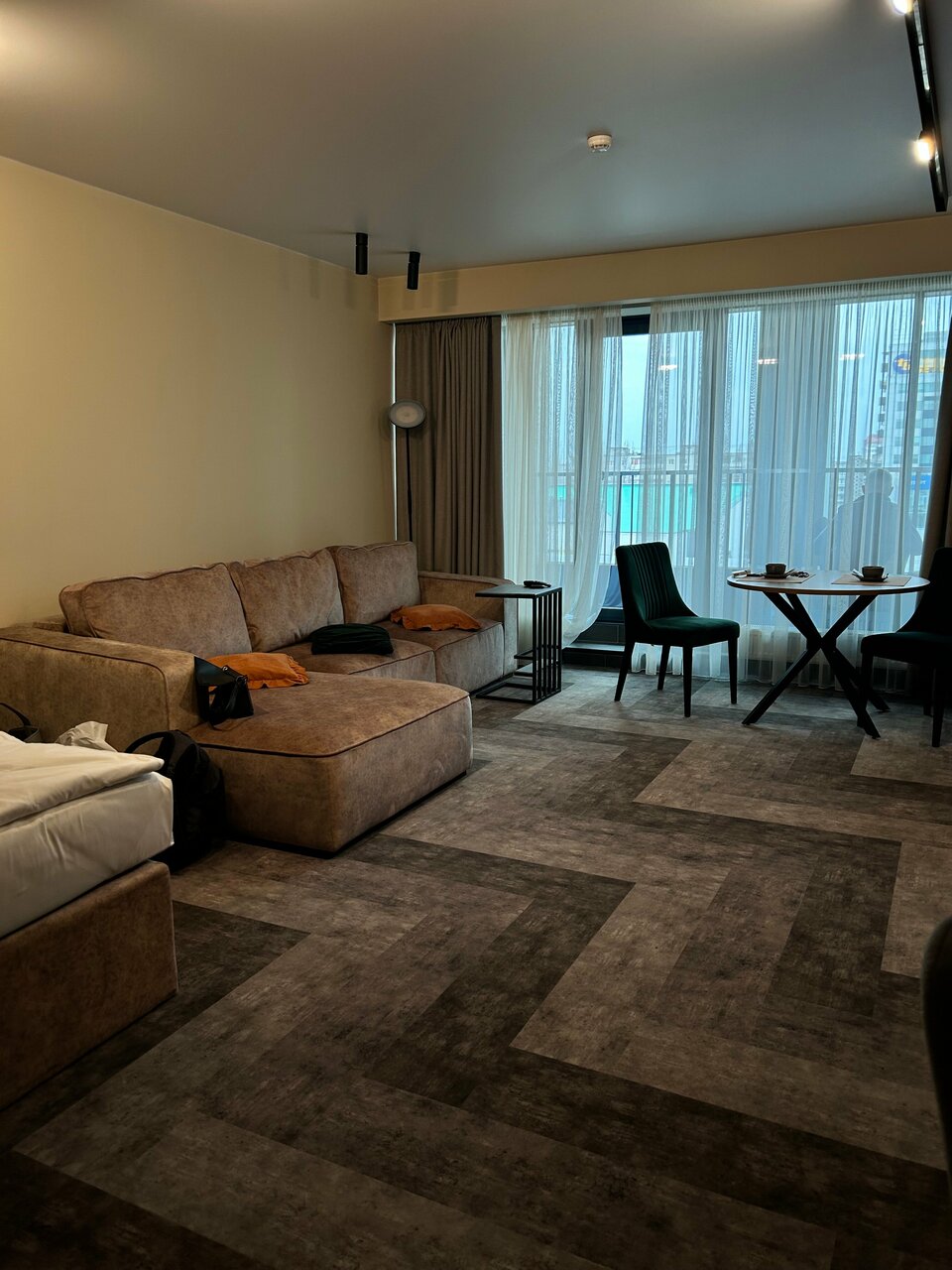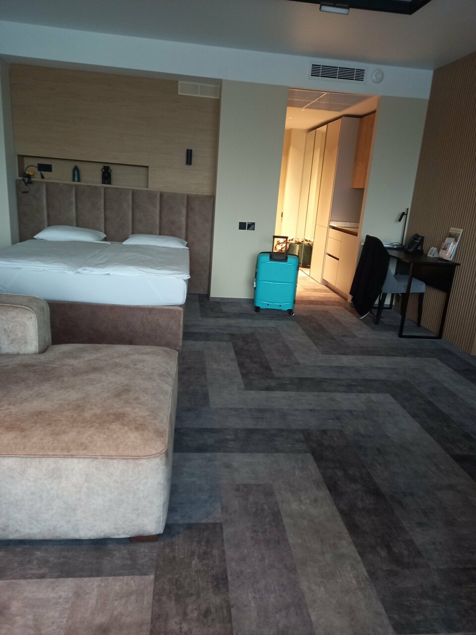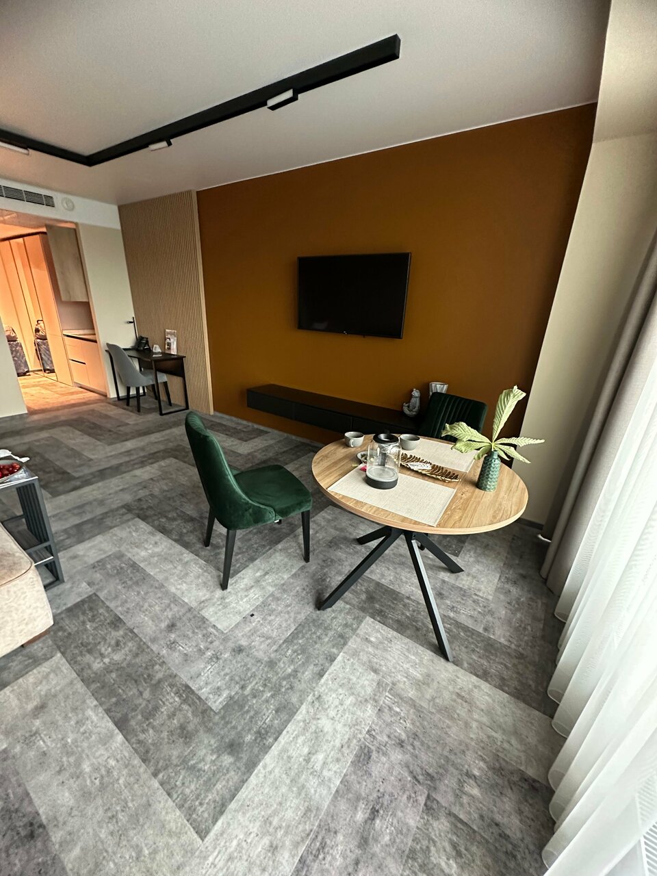 Номер новый, чистый, свежий. Расположение удобное, комфортное. Обслуживание внимательное, вежливое, предупредительное. Чистота в номере поддерживается стабильно. Персонал вежливый, внимательный. Все, что нужно для жизни, есть. Из минусов: очень слышно соседей. 4+ из 5