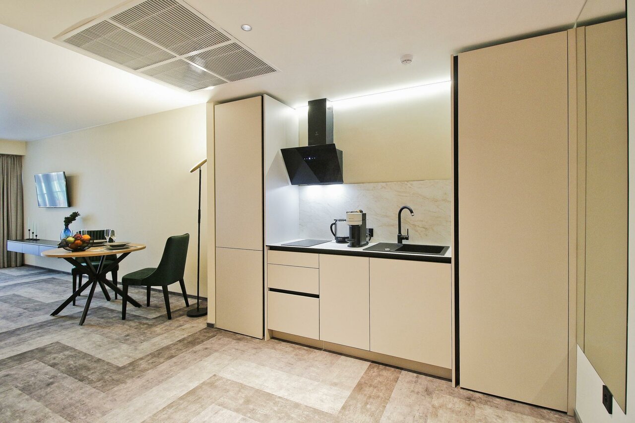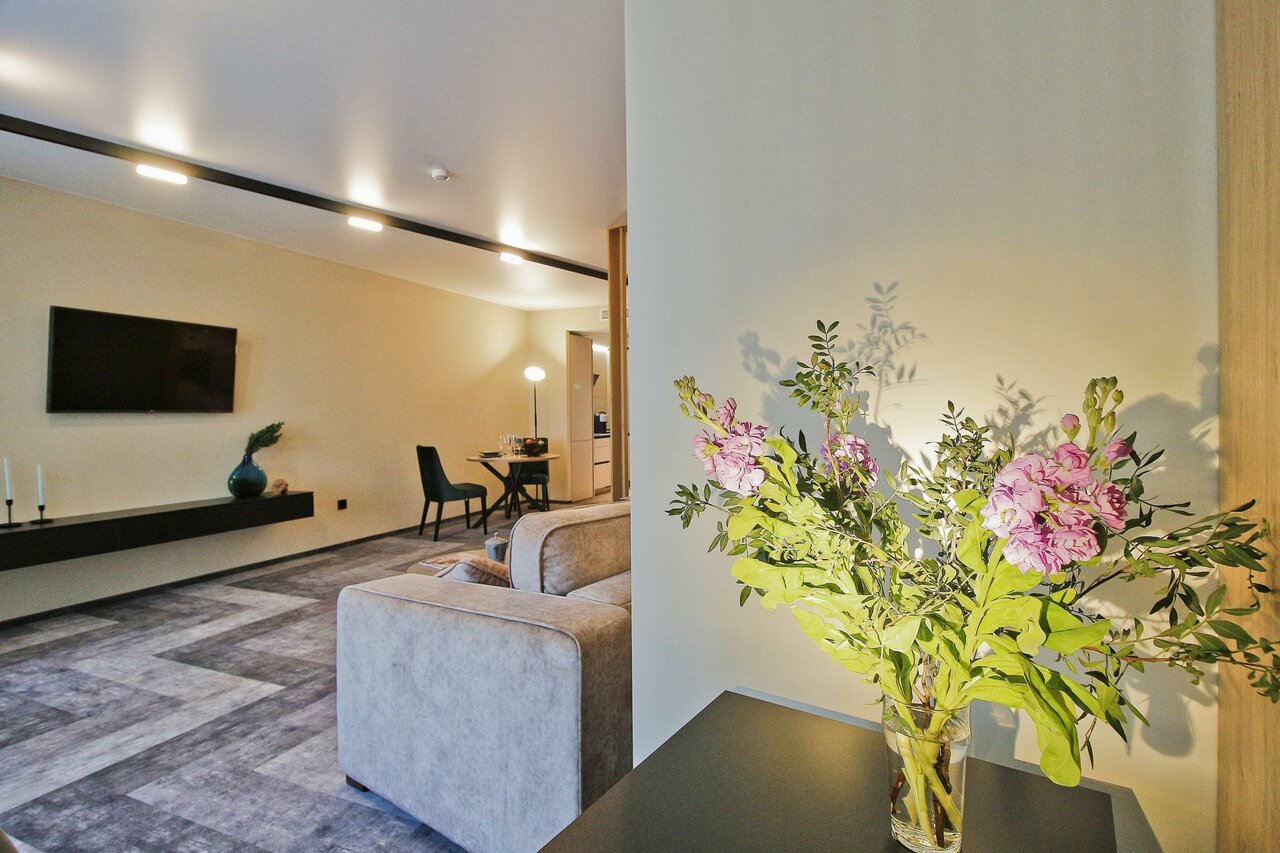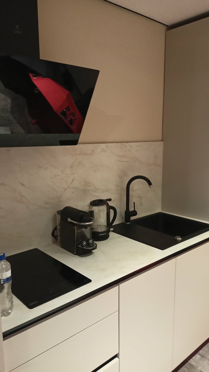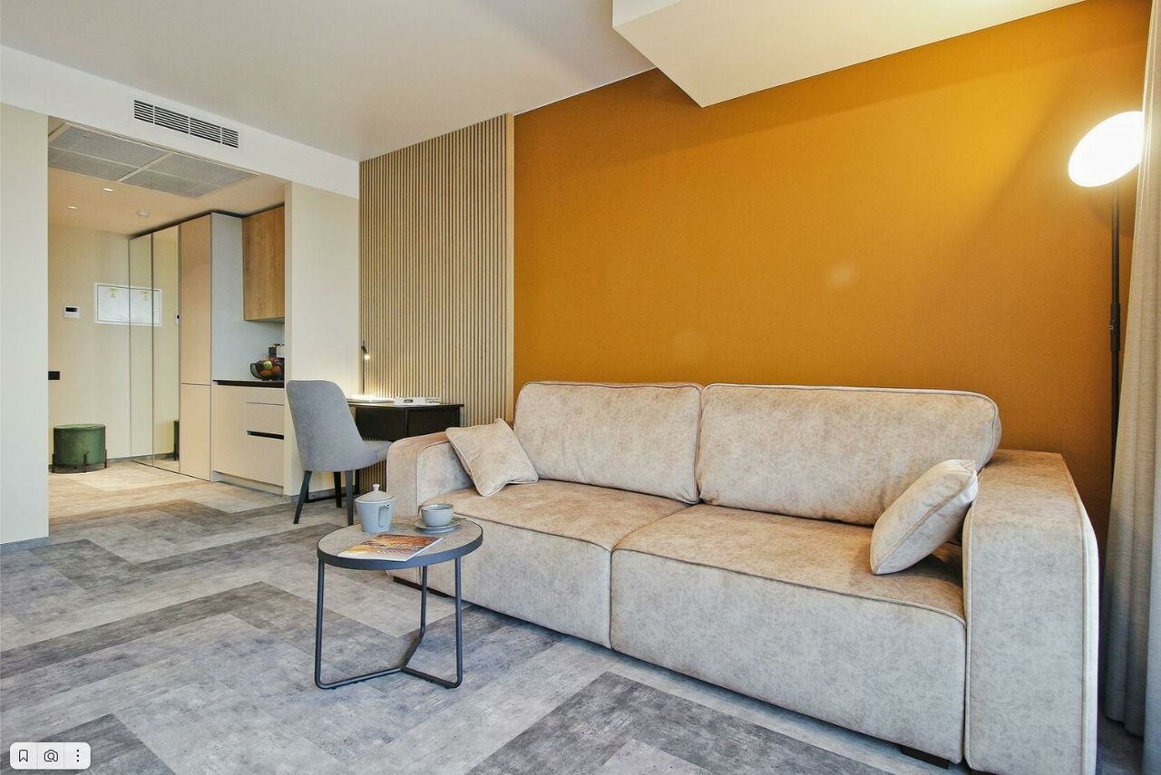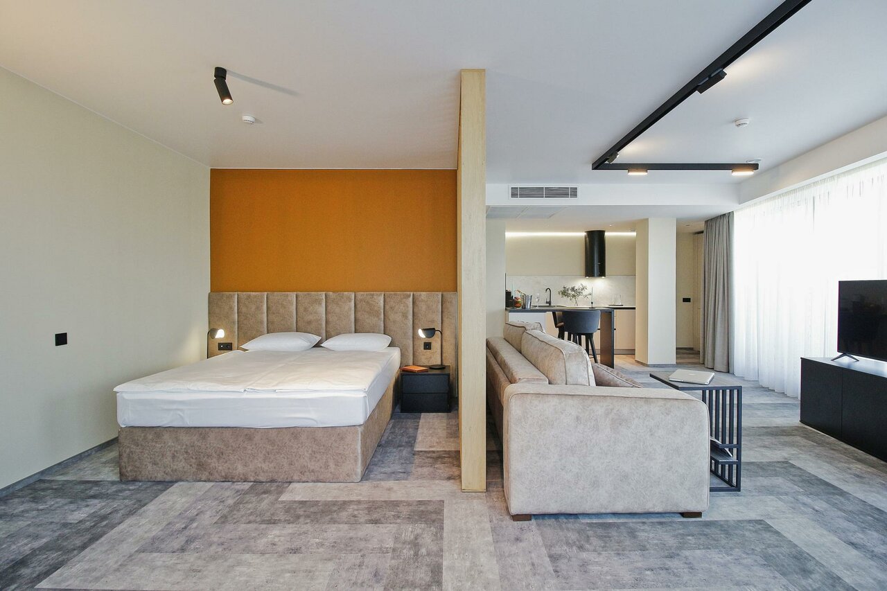 Очень приятные апартаменты. Есть все необходимое для комфортного проживания. Хорошая мебель , удобная кровать и замечательный диван). Добавляет уюта милые элементы дизайна, вазочки, статуэтки. Понравилась красивая посуда и отличный кофе. Только воду для питья и приготовления пищи надо брать из кулера(в холле) или покупать.