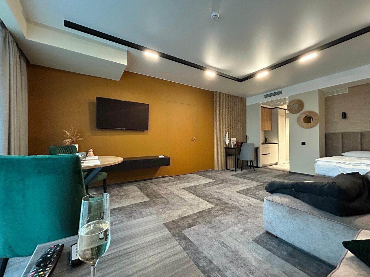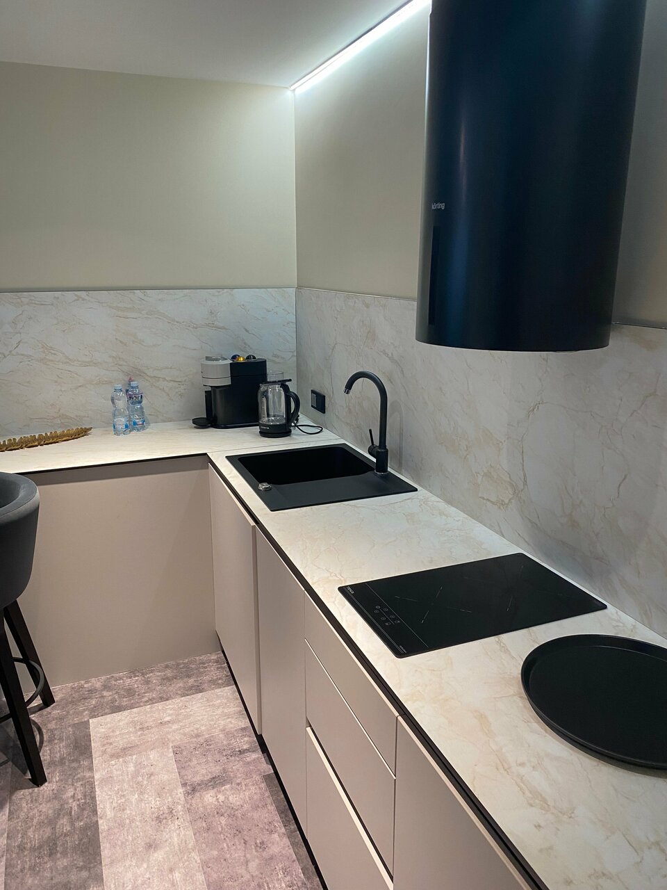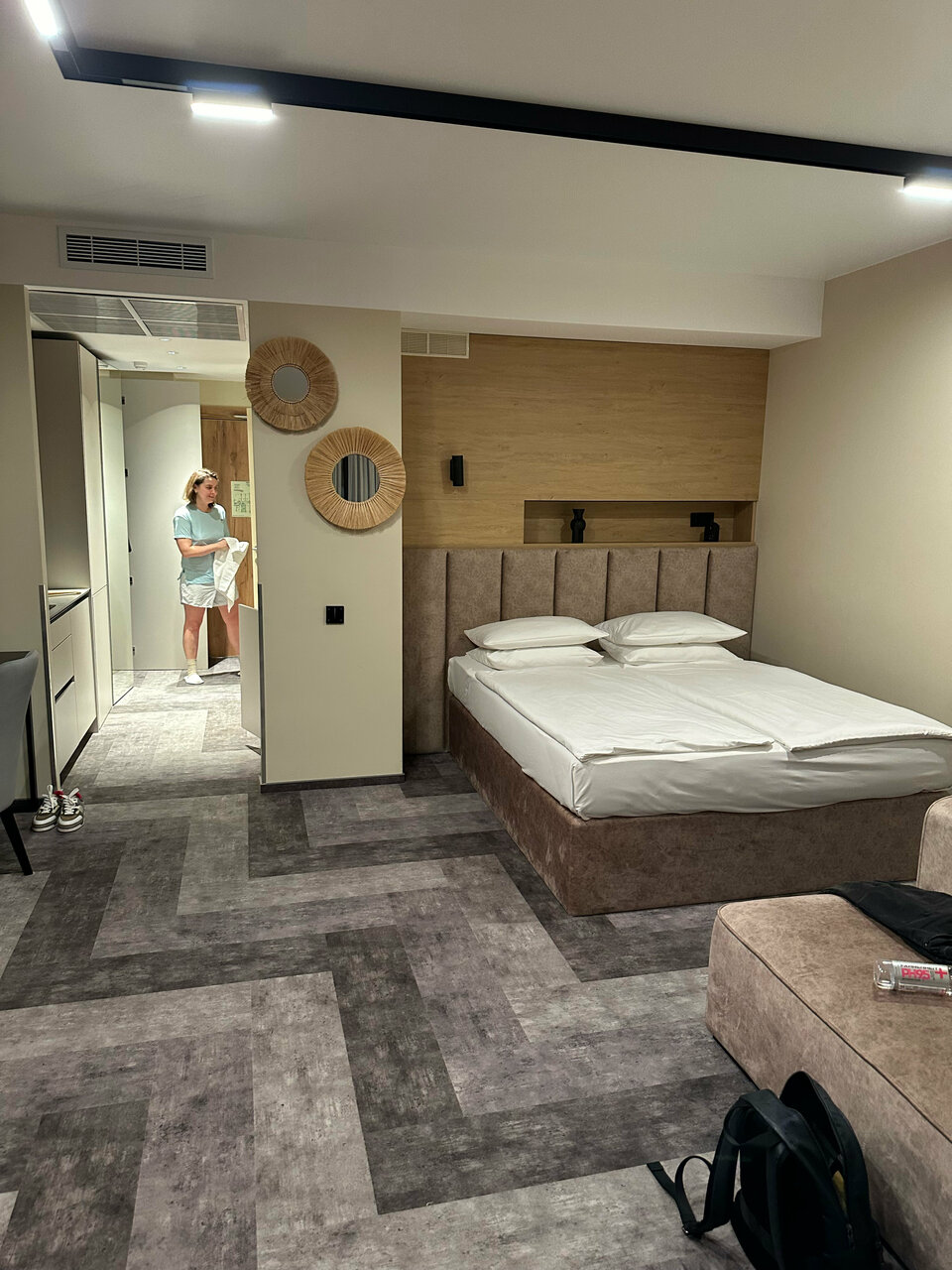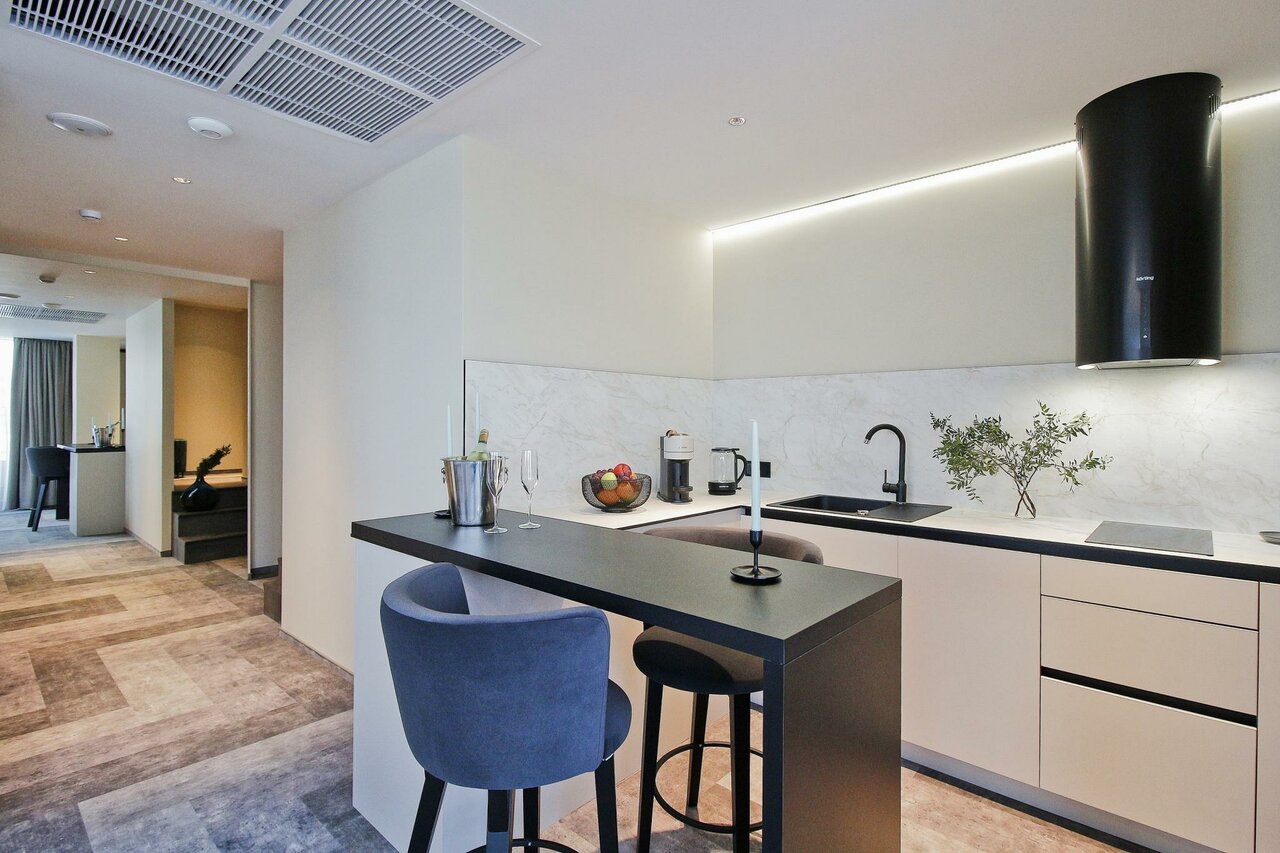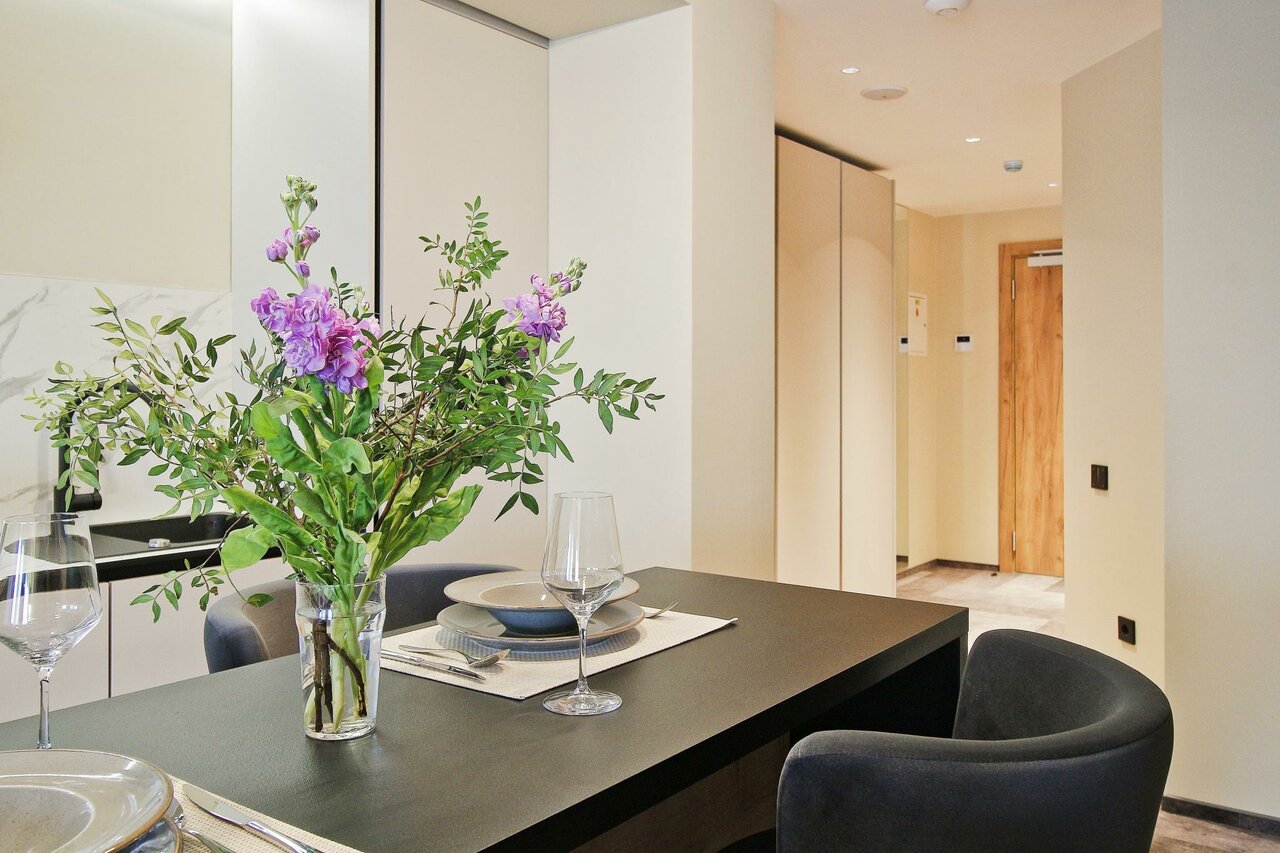 Очень приятные апартаменты. Есть все необходимое для комфортного проживания. Хорошая мебель , удобная кровать и замечательный диван). Добавляет уюта милые элементы дизайна, вазочки, статуэтки. Понравилась красивая посуда и отличный кофе. Только воду для питья и приготовления пищи надо брать из кулера(в холле) или покупать.