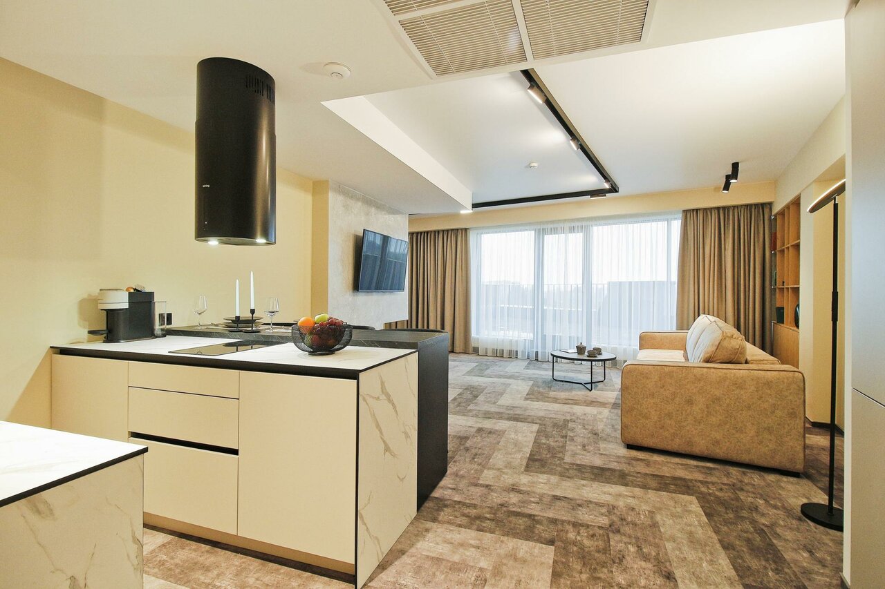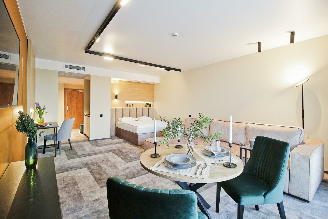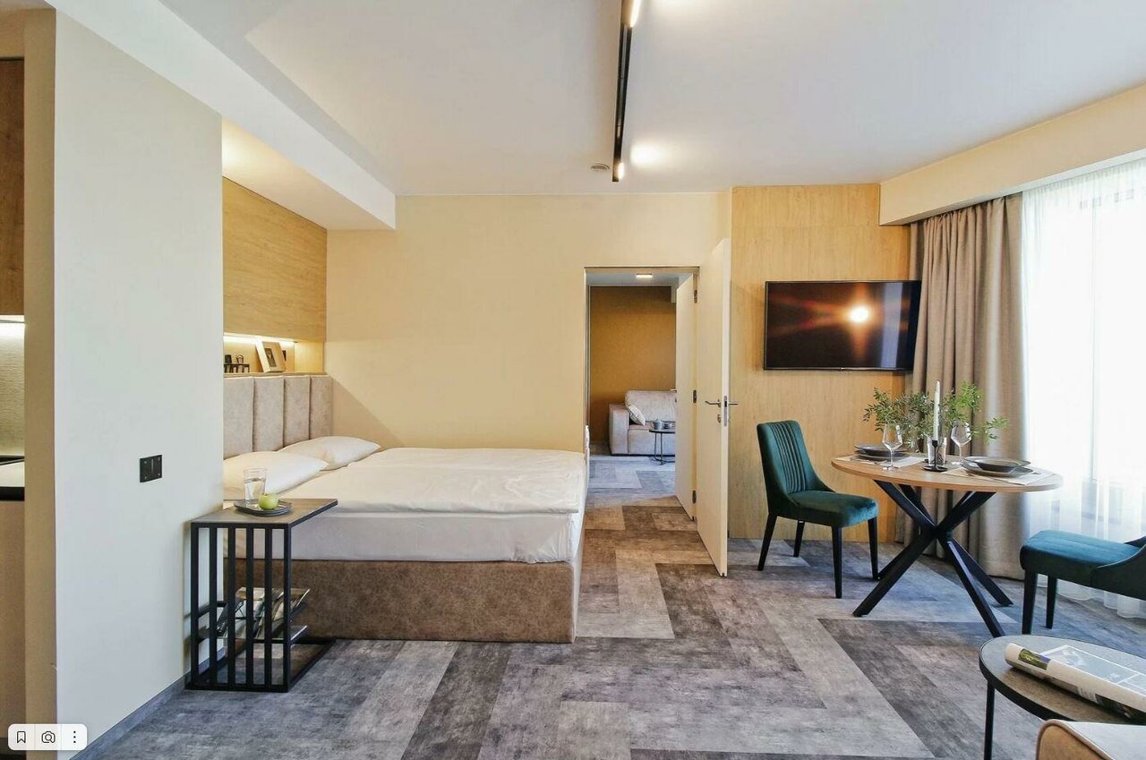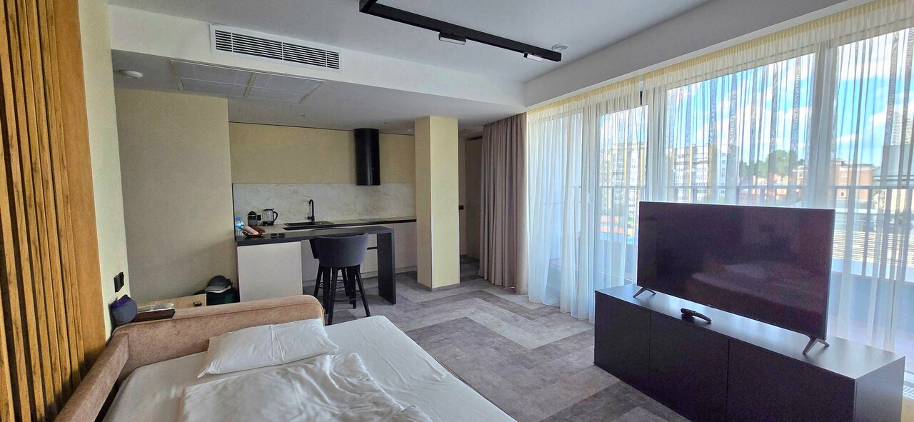 Апартаменты просто супер! Отличный ремонт, классная мебель, есть всё необходимое. Чистота идеальная! Номер был с видом на город. Надеюсь ещё ни раз вернёмся сюда.