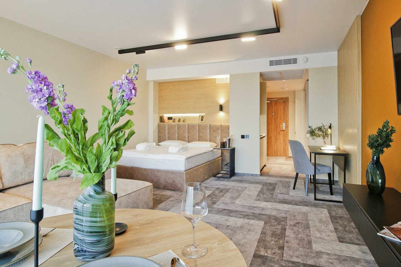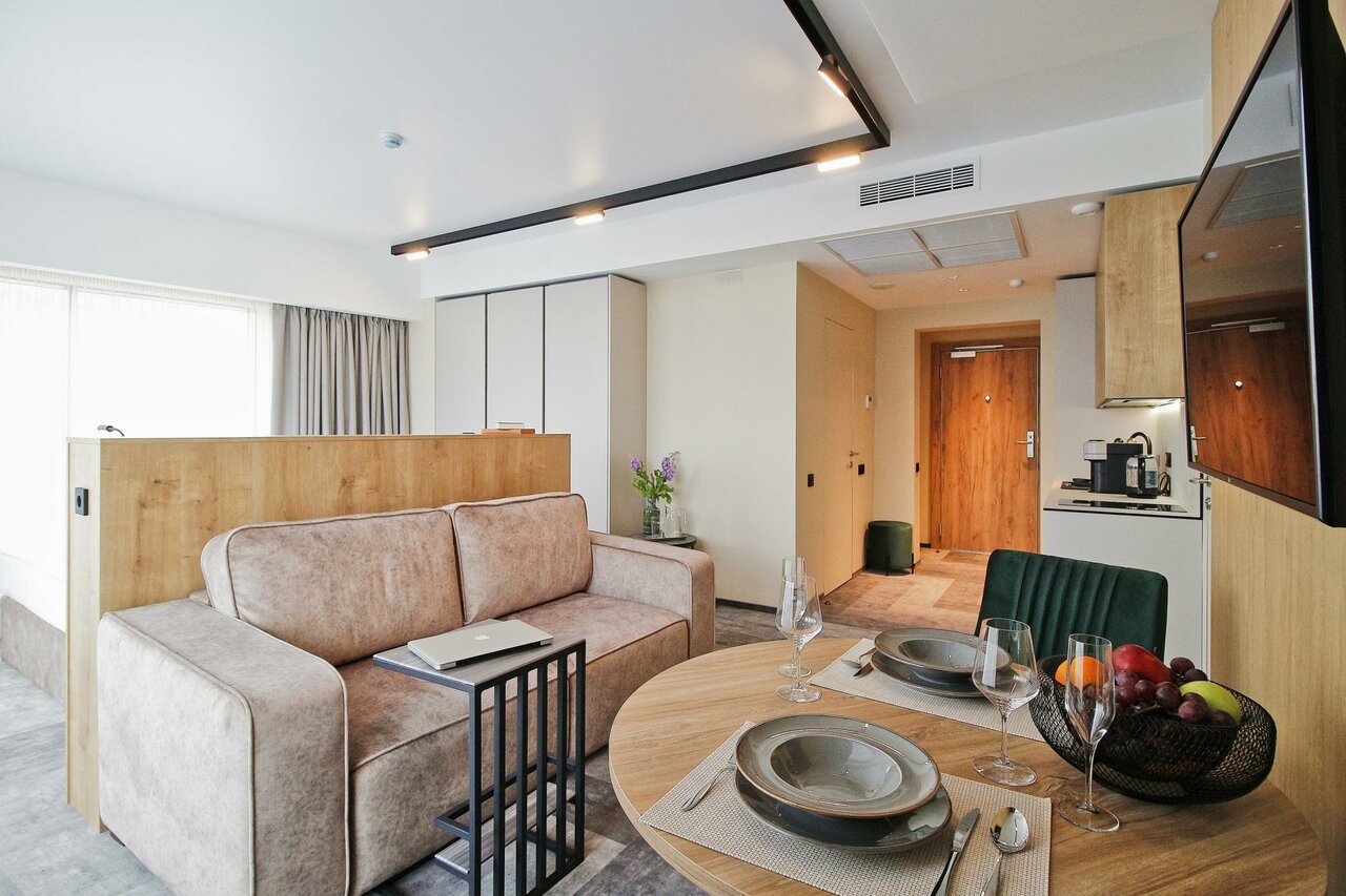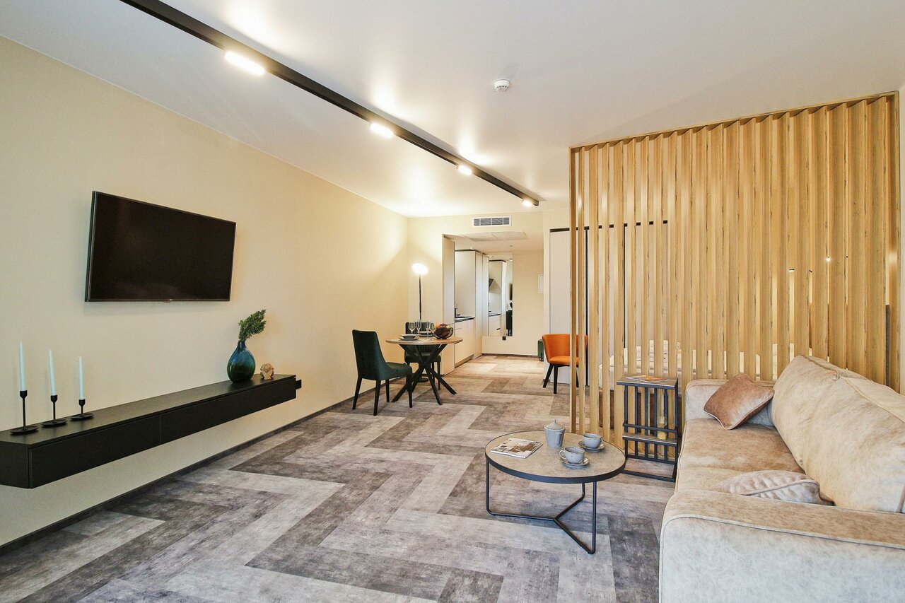 Апартаменты просто супер! Отличный ремонт, классная мебель, есть всё необходимое. Чистота идеальная! Номер был с видом на город. Надеюсь ещё ни раз вернёмся сюда.