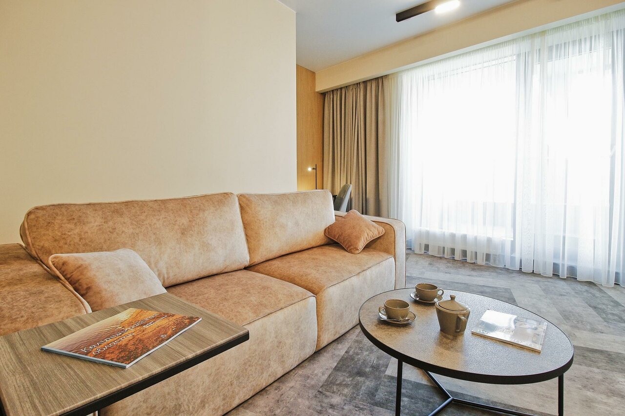 Удобства: — Бесплатная парковка, тренажёрный зал, сауна, баня, 2 ресторана, летняя веранда. — Бизнес-центр, конференц-зал, трансфер (платный/до аэропорта). — Услуги для детей: манеж, игровая комната, бесплатные кровати (4–10 лет). — СПА, салон красоты, прокат велосипедов и авто.