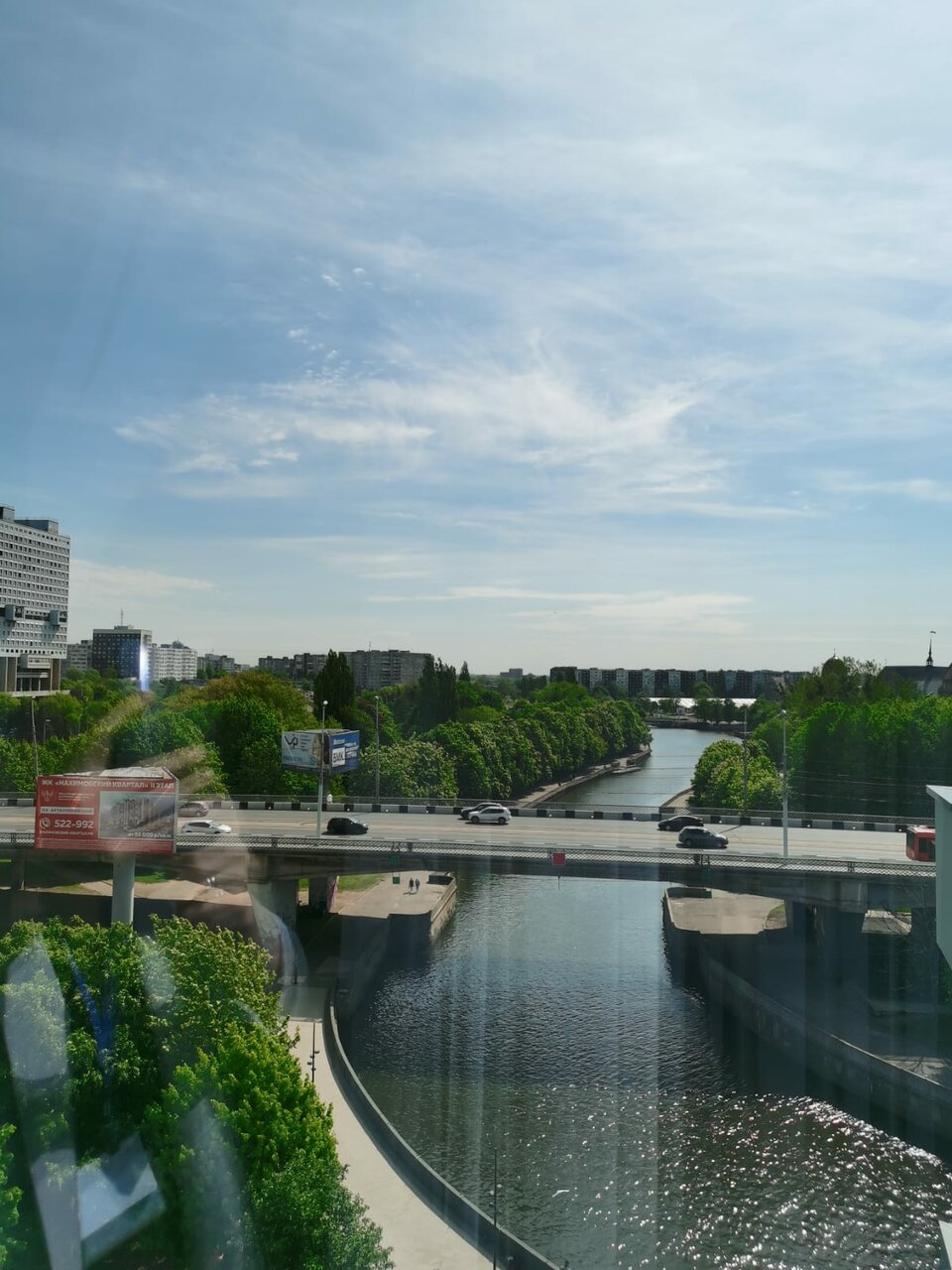- Красивый вид из окна (на город или реку).