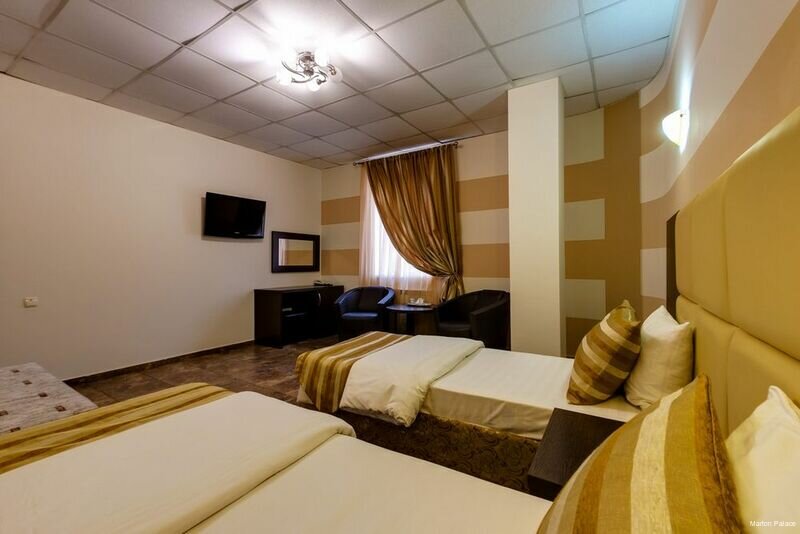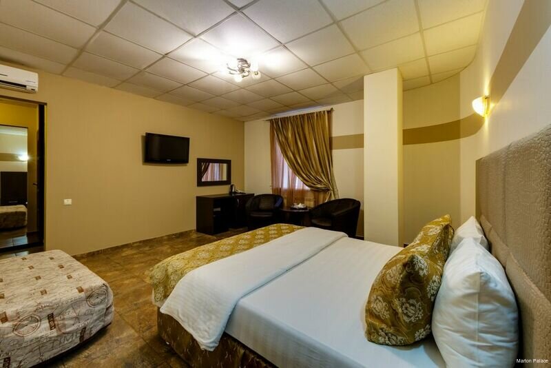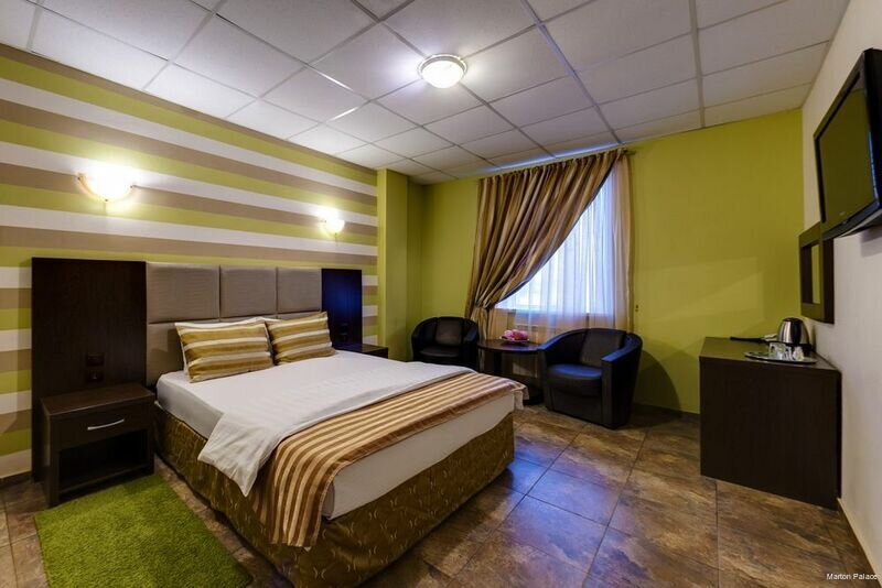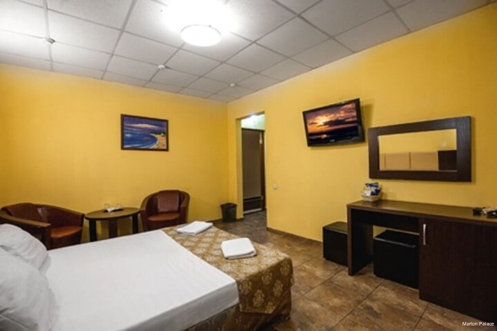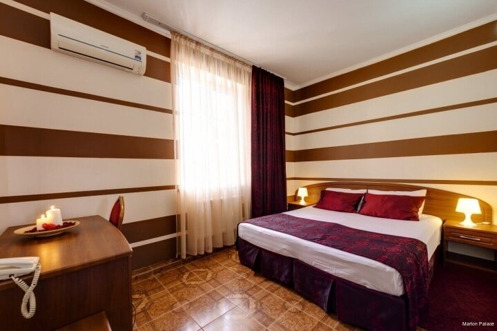 Очень понравился ваш отель! Девчонки на ресепшене милые улыбчивые, внимательные, а самое главное профессионально подходят к своим обязанностям! Номер оборудован по всем современным параметрам, интернет просто пушка! Горничные убирают добросовестно, постель белоснежная, матрас очень хорошего качества(тело отдохнуло бомбически) а вид из окна шикарен! Весь город виден как на ладони!) Завтраки вкусные и разнообразные, особенно выпечка Однозначно буду советовать всем своим друзьям и знакомым!!! Мартон Палас ставлю тебе 10 из 10