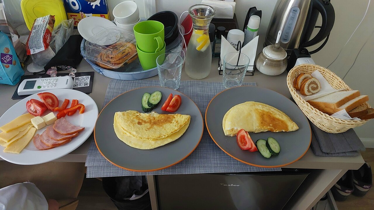 Отличный отель. Очень гостеприимные сотрудники. Просторный, чистый номер, удобная кровать, но для меня была маловата. Отличная шумоизоляция. Хорошее расположение в центре города. На завтрак выбрал яичницу. Сделали из двух яиц и положили с нарезанными кусочками овощей, хлеб, два ломтика сыра и ветчина. Хватит, чтобы дойти до ближайшего кафе и съесть что-нибудь попитательнее.