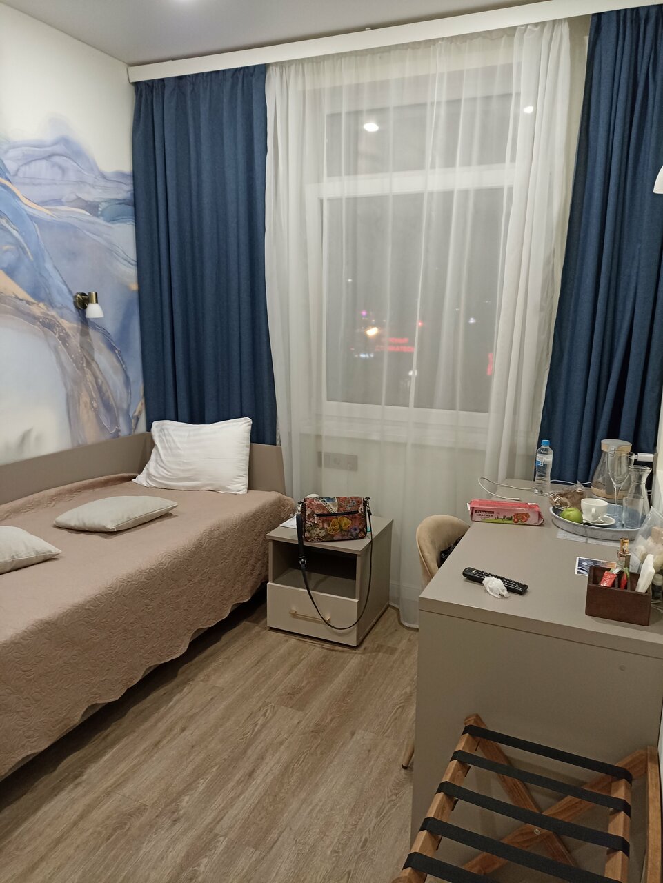 Великолепный отель! Постель мягкая, номер чистый, гель для душа очень приятно пахнет, шторы отлично скрывают солнце, в номере есть холодильник, фен, тапочки, чайник. Персонал очень отзывчивый и делает пребывание в Калининграде незабываемым. До северного вокзала можно дойти минут за 15.