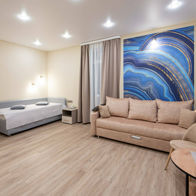 Отличный отель. Удобное месторасположение. Мы жили в семейном номере, он двухкомнатный, вся мебель новая. Вкусные завтраки, круто, что завтрак доставляют прямо в номер без доп платы. Администраторы на ресепшн вежливые. Если будем еще в Калинграде, обязательно к вам вернемся