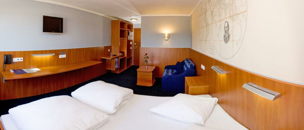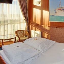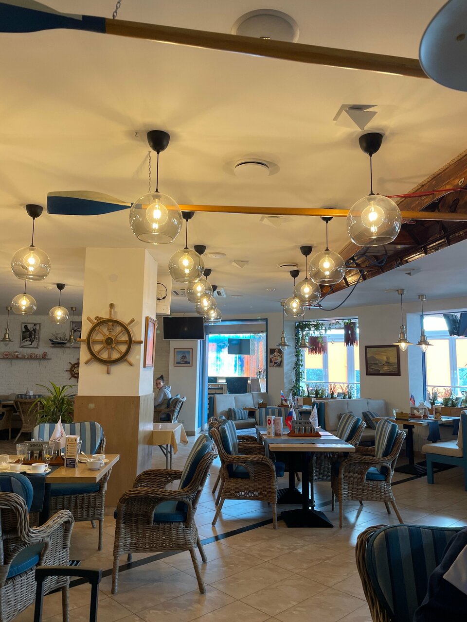 Сам отель неплохой, белье чистое, есть холодильник, все во время убирают и регулярно подкладывают шампунь и гель для душа, правда нет кондиционера, не работают прикроватные светильники. На счет ресторана, не разнообразное меню, многие блюда не вкусные, иногда не пунктуальные официантыофицианты. Порадовал дизайн интерьера, все в морской и мореплавательной тематике.