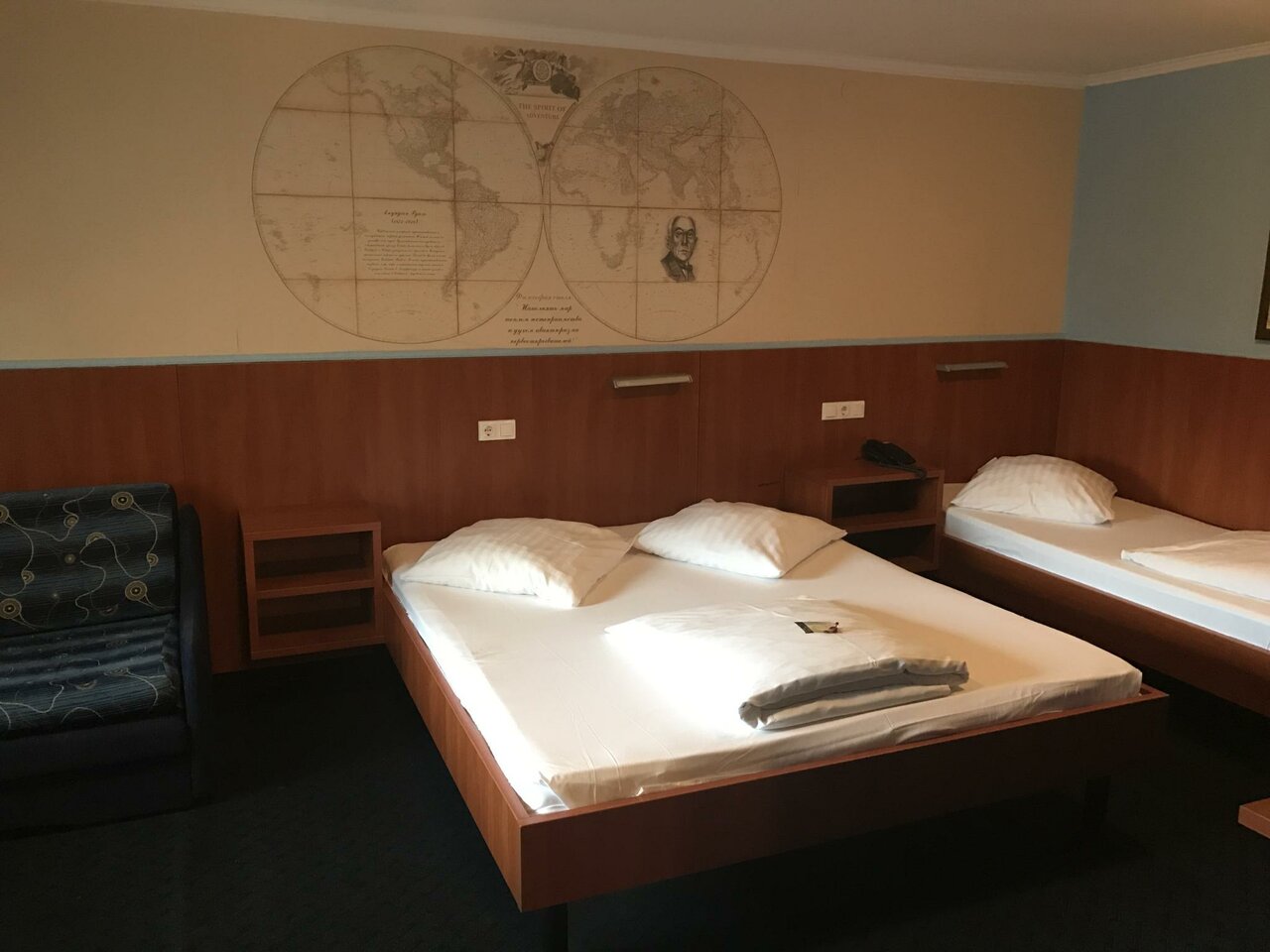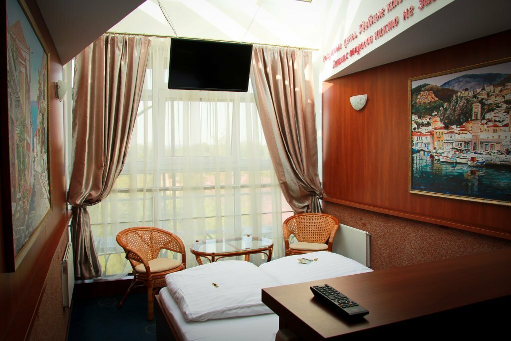 Хорошая гостиница, со своим неповторимым стилем) хорошие номера, уборка регулярная, в ресторане на 1 этаже можно вкусно и относительно недорого поесть, но до 21-00, что конечно же расстраивает. Единственный минус на мой взгляд — это расположение! Вокруг активно строят автомагистраль и развязки, но когда-нибудь это должно закончиться