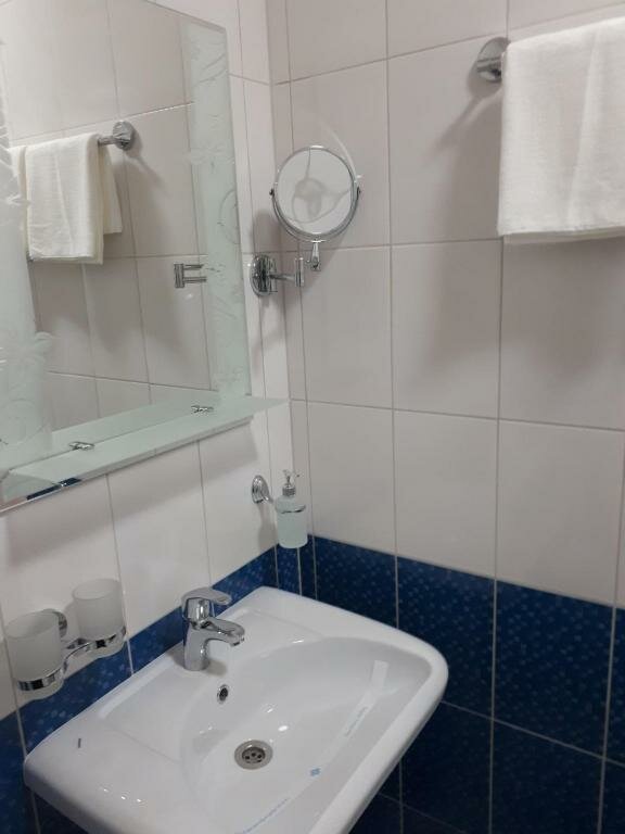 Этот отель можно рассмотреть только тем, у кого нет бОльших финансов для размещения в более комфортно месте. И непременно только тем, у кого очень крепкий сон! Громкие двери ванной, шкафа — купе, душевой кабины; плитка на полу в коридоре (без ковролина((. Пакетик чая (2) — приветственный, больше не положено, как и микро — зубная паста. Цена не соответствует уровню этого отеля. Из плюсов — четыре полотенца на постояльца ;недалеко главная площадь, Музей янтаря.