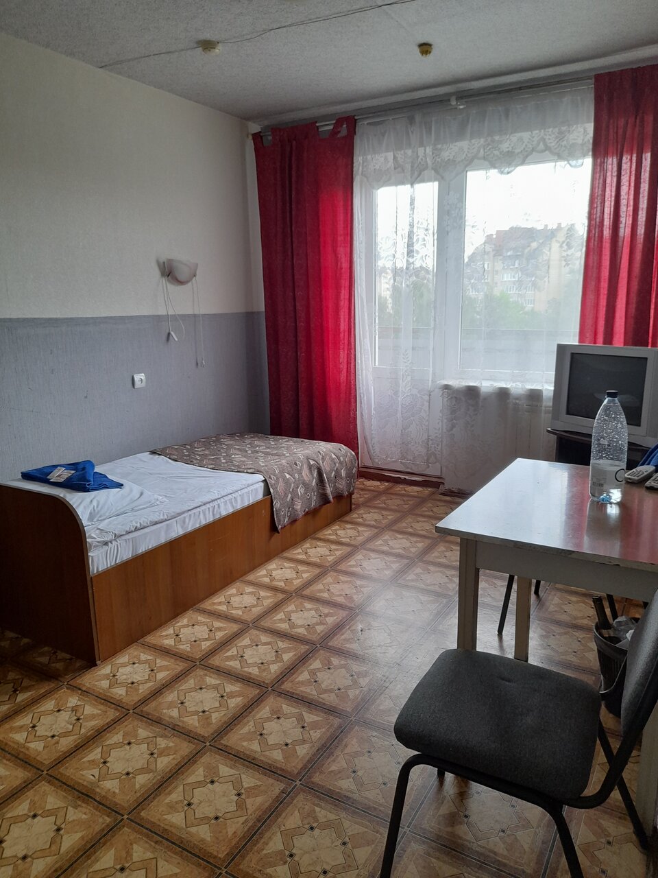 Приехали в Калининград зимой, на город посмотреть местной природой полюбоваться. Видимо так как ни сезон, сделали скидочку, получилось очень бюджетненько. В номере есть, небольшая кухонка, холодильник, чайник, две кружечки, телевизор, так же нарецейпшине дали фен. Тапочек и халатов, щёток зубных и паст нету так и гостиница без звёзд, за звёзды и оплата будет совсем другая. В номере чисто, тепло, белоснежное бельё. Думаю, в следующий раз сного здесь остановлюсь. Рядом с гостиницей есть всё, и магазины и кафе. Хорошее транспортное сообщение.