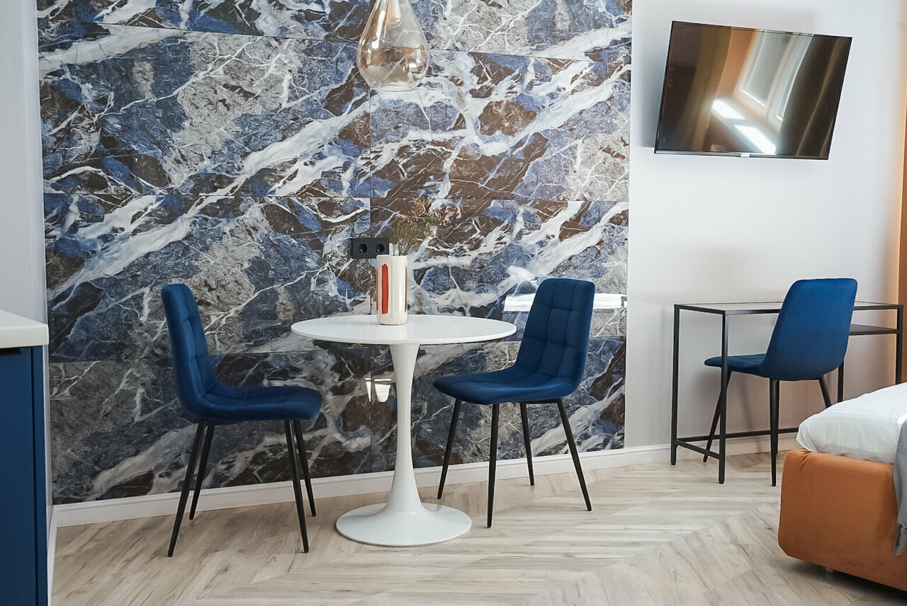 Калининград привлекал нас давно, и очень хотелось после долгой дороги остановиться максимально комфортно. Нашли через 2гис в шаговой доступности от основных достопримечательностей по приемлемой ценн апартаменты Павловых. Приехав, сразу заметили систему безопасности, огороженную чистую территорию. Здание в спальном районе, рядом парк, продуктовые магазины, тц. Были представлены несколько студий по цветовой категории. Мы выбрали апартаменты по Галицкого,24 ‘Сапфир’. Стильно оформленная, чистая и комфортная студия со всеми удобствами, приятная атмосфера, дизайнерский интерьер, тв, wi-fi, стиральная машина, сушилка. Несмотря на бесконтактное заселение мы почувствовали высокий уровень гостеприимства владельцев, отвественное и бережное отношение к клиентам. Большое спасибо семье Павловых за наш незабываемый отдых в замечательном Калининграде с добрыми людьми!