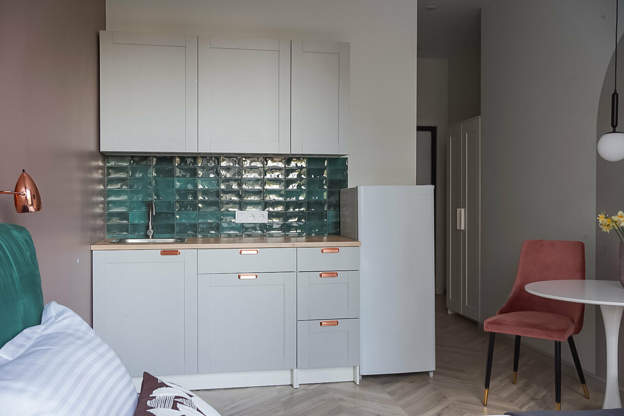 Все на высшем уровне!!! Остановился в студии ‘Аквамарин’. Описание на сайте соответствует на все . Уютно, чисто, аккуратно и очень атмосферно. Порадовало бесконтактное заселение и то, что по согласованию с менеджером получилось заселиться раньше, а не стоять с сумками под дверью. Все необходимое для комфортабельного проживания (и даже больше) есть. Расположение прекрасное (фактически центр города) все в шаговой доступности. Поскольку был в Калининграде в марте, актуальным было наличие в студии сауны. Очень приятно после прогулок по городу и поездок на море погретьсяи порелаксировать. Отдельное спасибо Дмитрию Шторку. Всегда был на связи и оперативно помогал решать возникающие вопросы. После проживания остались только положительные эмоции и впечатления. Однозначно рекомендую!!!