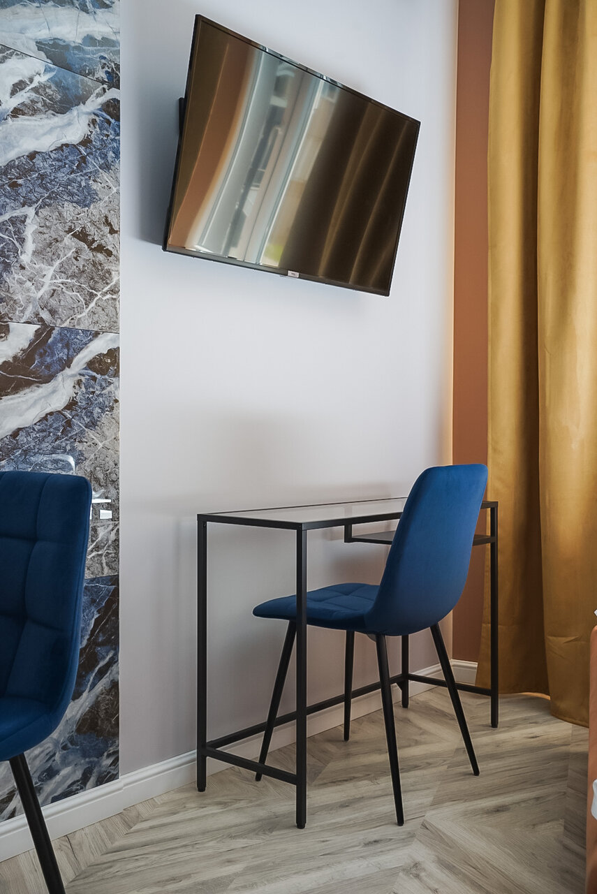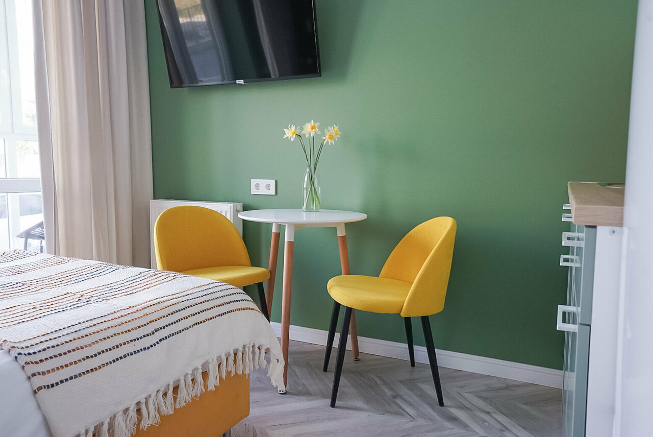 Все для самостоятельных гостей: кофеварка, стиральные машины и сушилка, посуда для готовки и т. д. Жили в студии Рубин, по телевизору смотрели YouTube, есть возможность зайти в Netflix, Кинопоиск и другие платформы, если есть аккаунт. Чисто, светло, стильно. Благодаря видеоинструкциям понятно, как заселяться и выселяться. Близко ко всем знаковым достопримечательностям. Получилась очень комфортная поездка в Калининград!