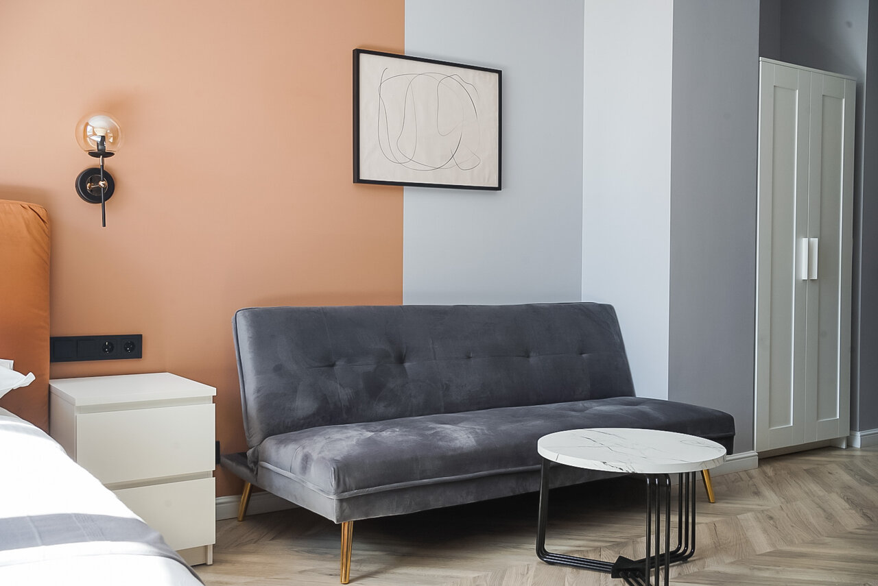 Уютная смарт-студия с диваном на набережной, размещение до 3-х гостей