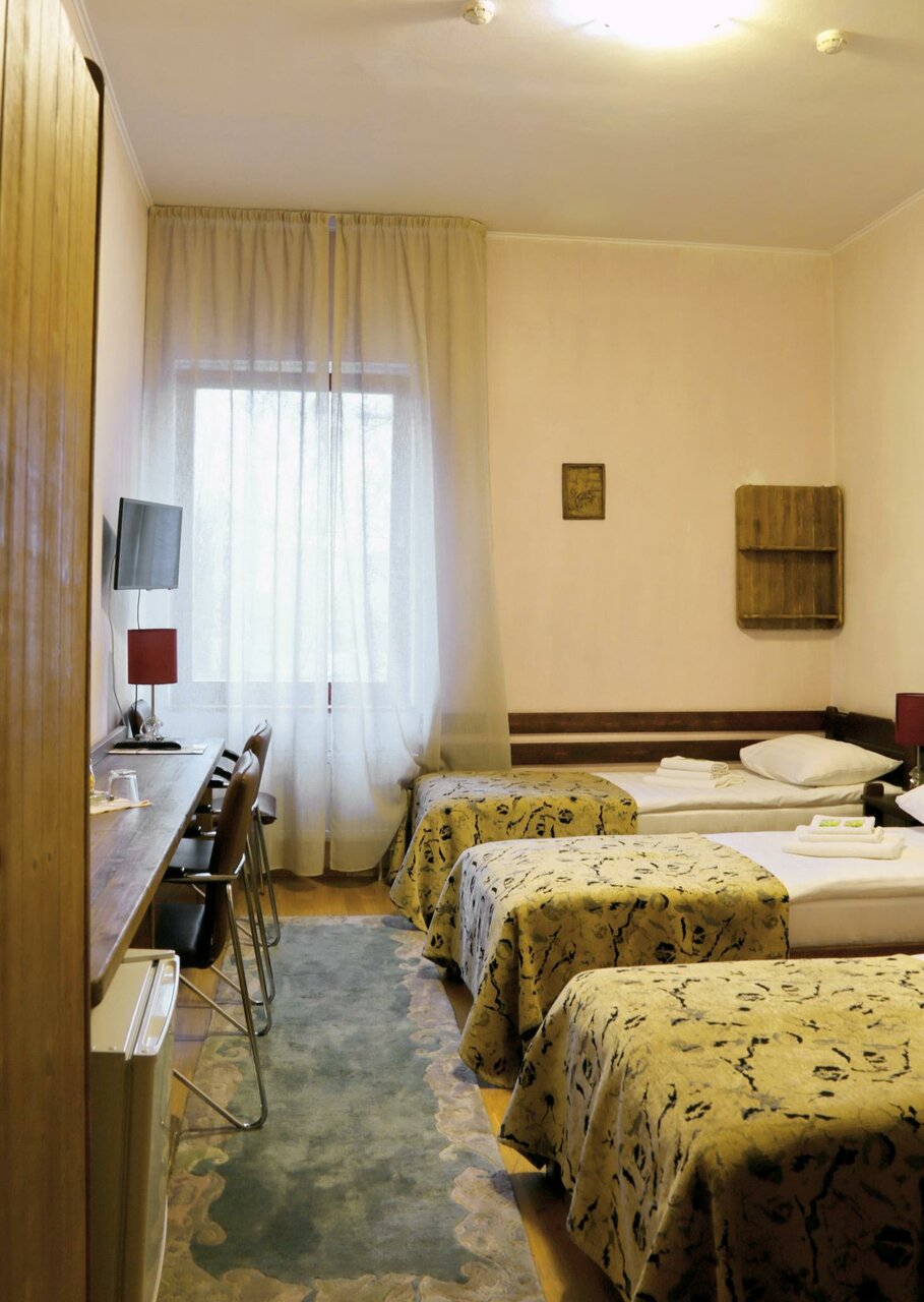 Очень неплохой отель: расположен от центра в 20 минутах езды на автобусе, рядом есть кинотеатр и пиццерия; внутренняя отделка выполнена под старину — очень уютно и атмосферно, в номерах чисто, хорошая звукоизоляция, доброжелательный и отзывчивый персонал. Однако напор воды в душе слабый (номер был на последнем четвертом этаже) и хотелось бы, чтобы кафе работало не только на завтраки)))