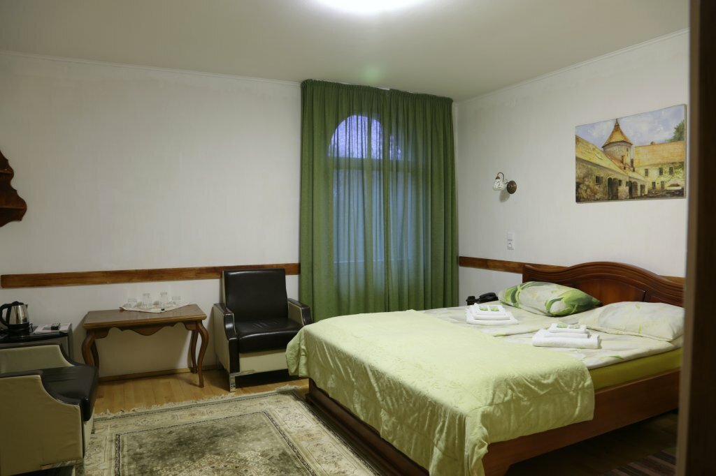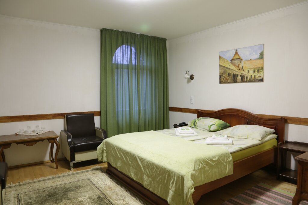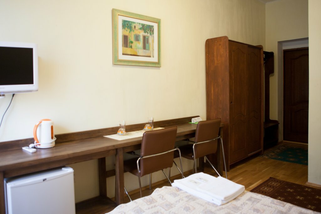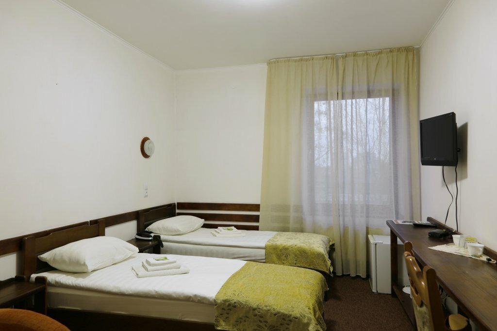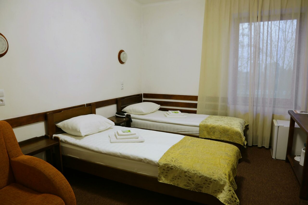 - Наличие чайника, посуды, фена, холодильника (в большинстве номеров).