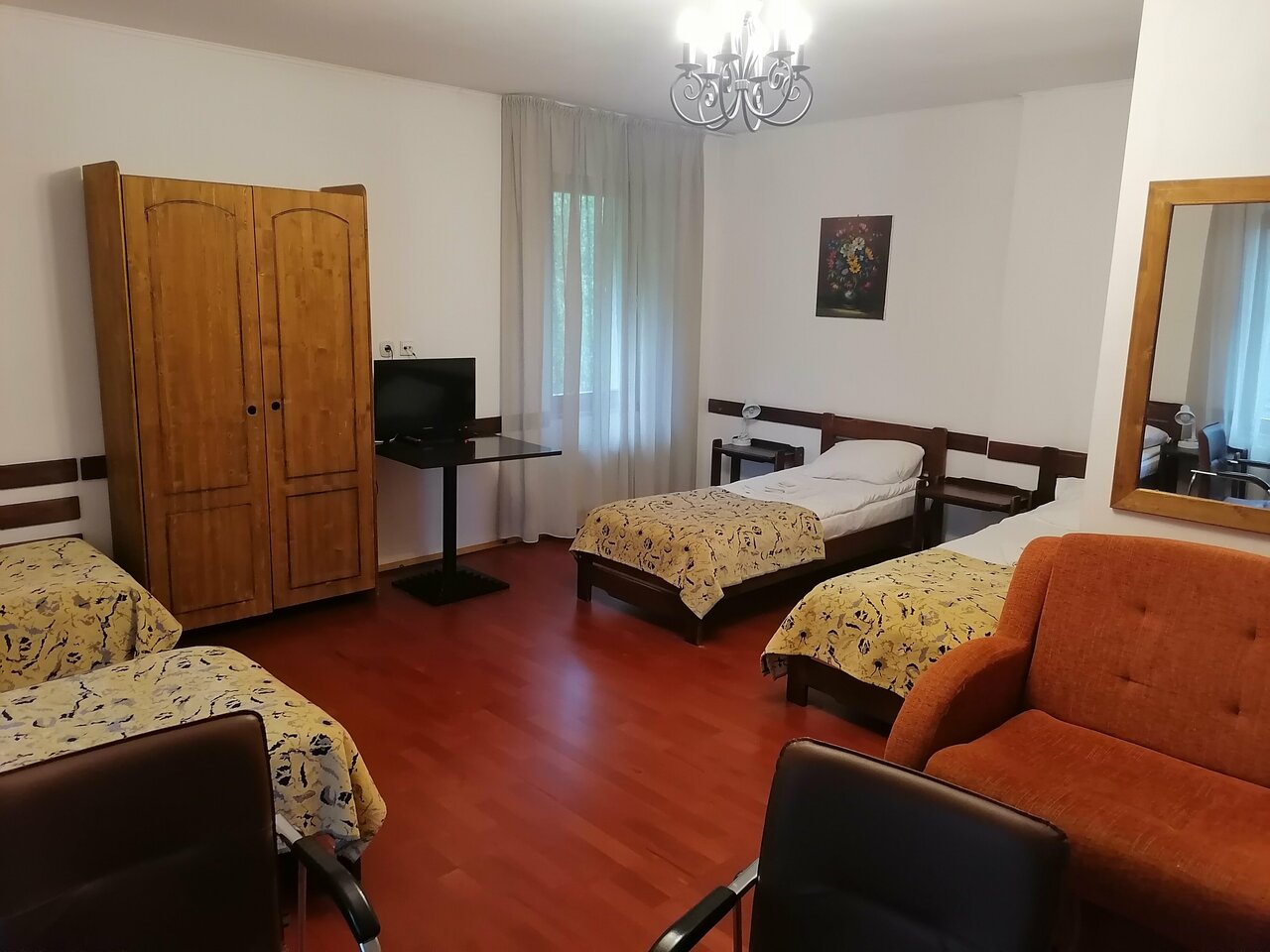 Были с 12 по 16 августа. Расположен и правда в 4 км от центра, но до августа 2020 года делают мост и мы стояли в пробках минут 40, это было очень грустно, столько тратить на дорогу. Запах из канализации присутствует. Завтрак обычный, нормальный, стоит 300 рублей. Жили рядом с ресепшеном было шумно с утра, с 7.30, разговаривают в полный голос. Ругаться не хотелось. Но рекомендую стоит думать окружающим, что отель маленький, а разговаривали, смеялись в полный голос. Холодильник в нашем номере не обнаружен. Из + чистенько, полотенца меняли, белье поменяли, шампуни и гели для душа были. + Постельное бельё чистое. + Чайник, чашки 2 шт, 2 блюдца, 2 ложки. + Дают памятку как и куда добраться. + -Доброжелательные работники ресепшена( только с утра не учитывали тональность и мощность голоса). +Рядом парк + Если на машине, то удобно, если без машины, то лучше выбрать центральнее отель. Калининград понравился, но пригороды больше.