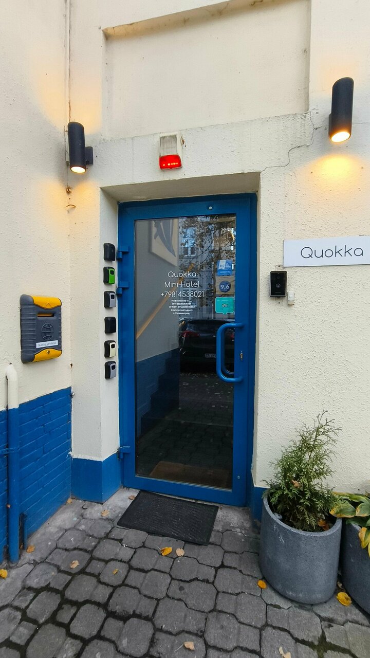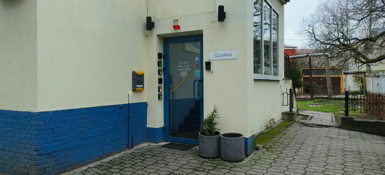 Гостиница Quokka — мини-отель в Калининграде, расположенный по адресу ул. Генделя, 10. Открыт круглосуточно, ежедневно. Номера (от 1500 до 2000 ₽/ночь) оснащены Wi-Fi, телевизором, холодильником, феном и звукоизоляцией. В наличии общая кухня, стиральная машина, микроволновка и плита. Разрешено проживание с детьми и животными. Рядом — парк, до центра — менее 2 км. Заезд с 14:00, выезд до 12:00. Услуги: камера хранения, ускоренная регистрация, уборка. Контакт: +7 (981) 453-80-21 (администратор). Построена в 2019 году.