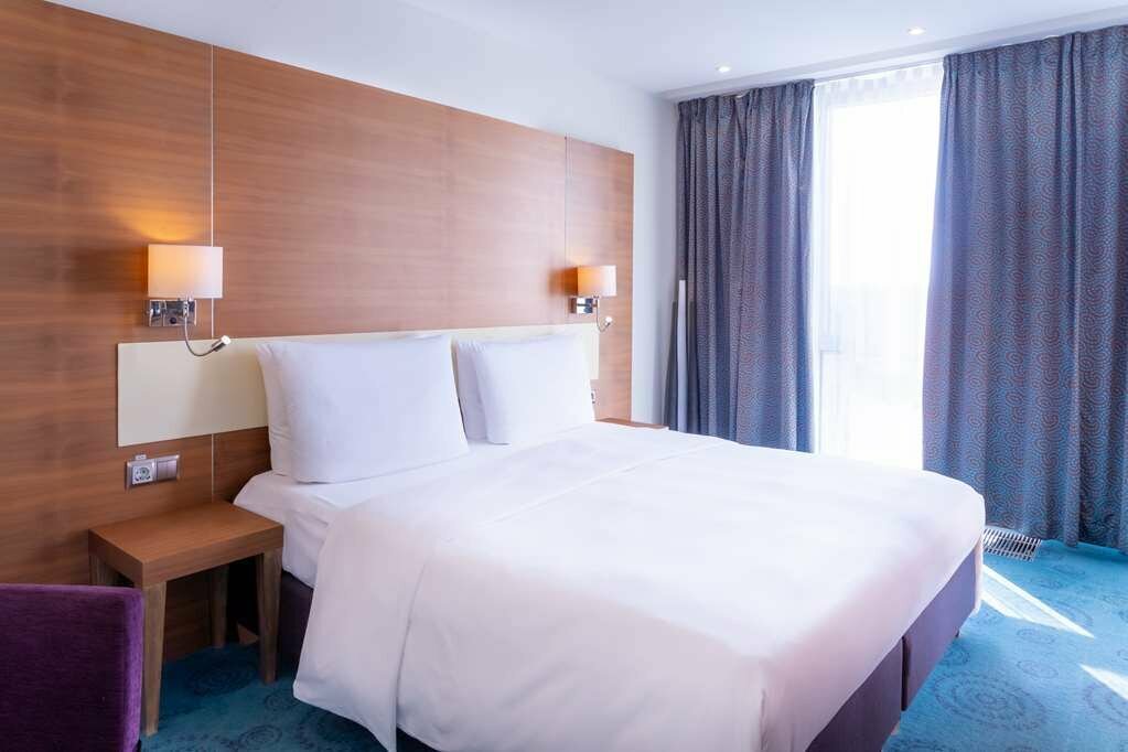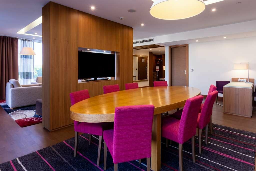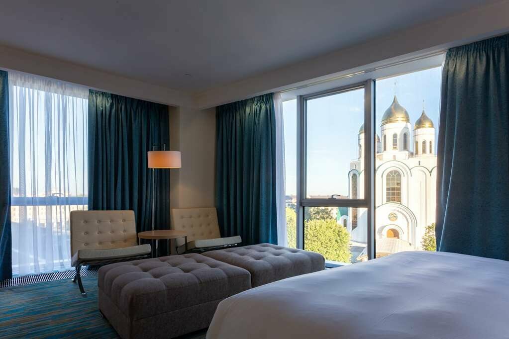 Для гостей доступны ресторан, два бара, кафе, спа-зона, тренажёрный зал, сауна и бизнес-центр. Отель подходит для деловых поездок (конференц-залы, коворкинг) и отдыха (парк рядом, трансферы до достопримечательностей).
