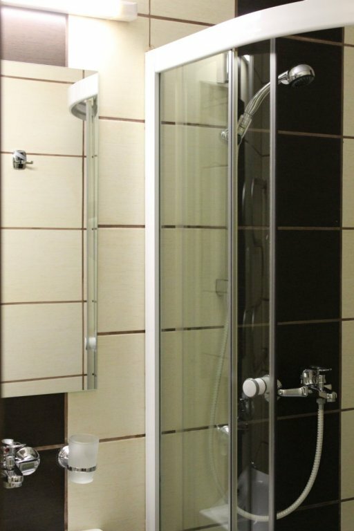 Очень приветливый и доброжелательный персонал. Сам гостевой дом, наверное, ещё недавно был очень хорош, но налёт некоторой изношенности уже начал поступать : покоцанные двери в туалет, перекошенные и с отломанными ручками дверцы в душевой кабине. В номере есть холодильник, кровать, шкаф, стол и 1 стул. В туалете можно воспользоваться мылом и гелем для душа. Завтраки за 200 руб. очень скромные.