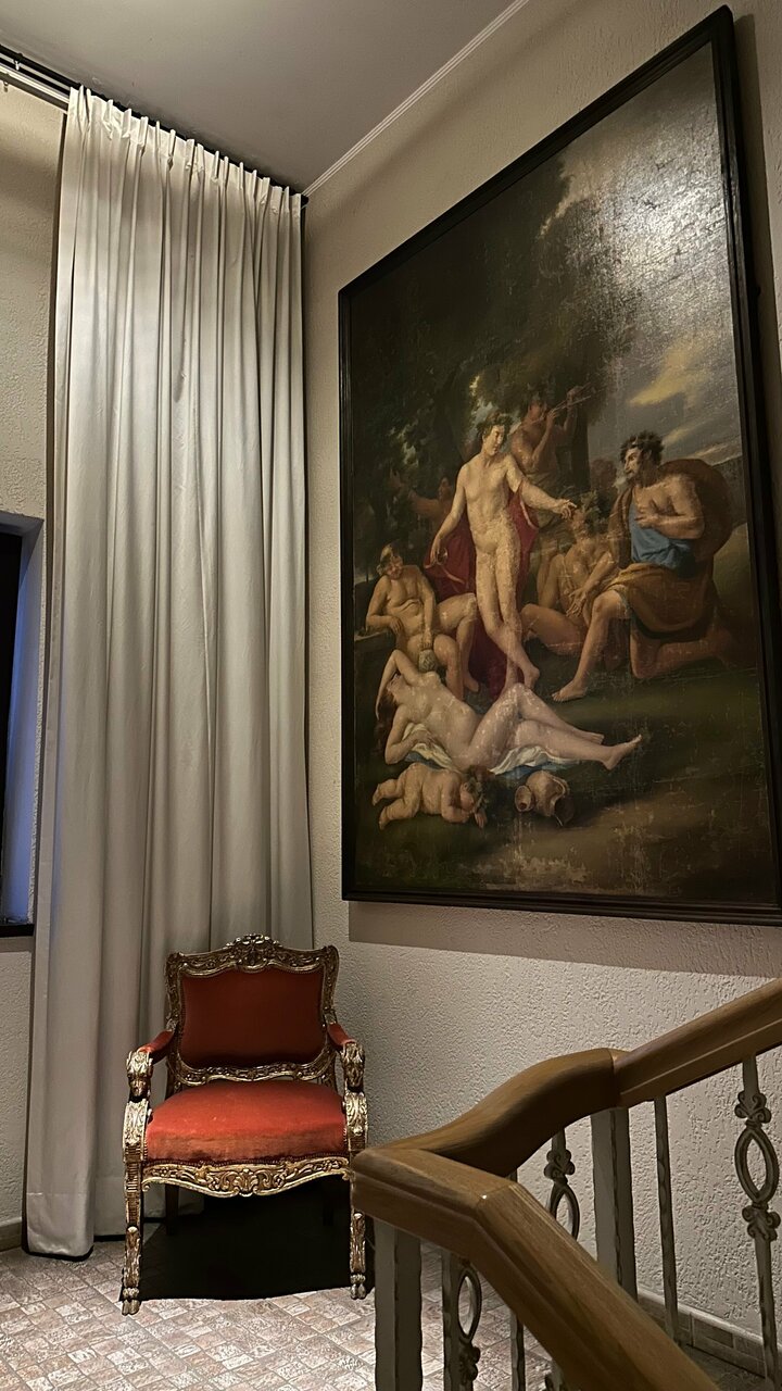 - Атмосферный интерьер (антикварная мебель, картины).