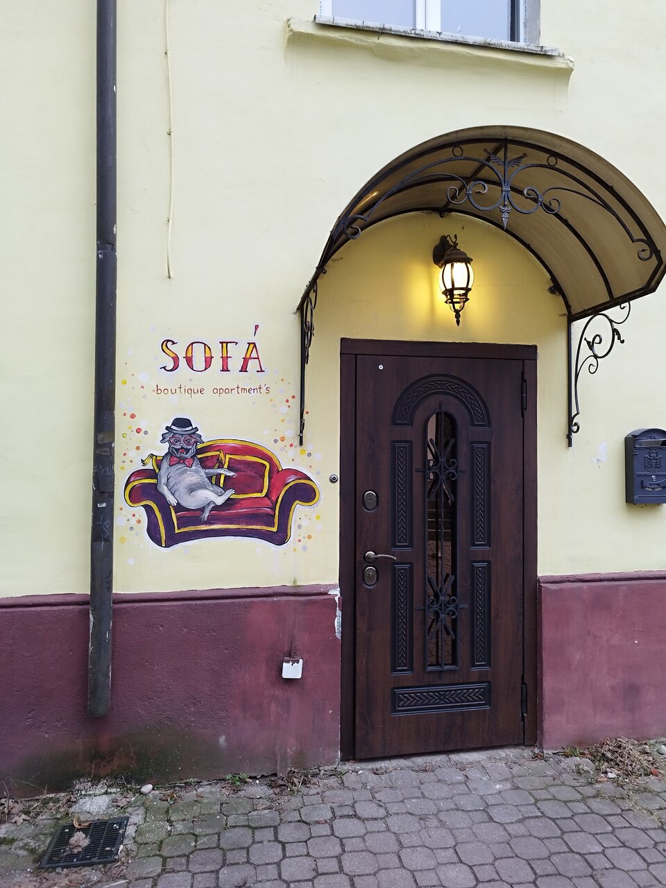 Sofa — boutique apartments — бутик-отель в Калининграде, расположенный по адресу: ул. Комсомольская, 17. Предлагает стильные апартаменты для комфортного проживания. Работает круглосуточно, без включённого питания. Удобное расположение: менее 3 км до центра города, рядом парк. Контакты: +7 (909) 780-77-70.