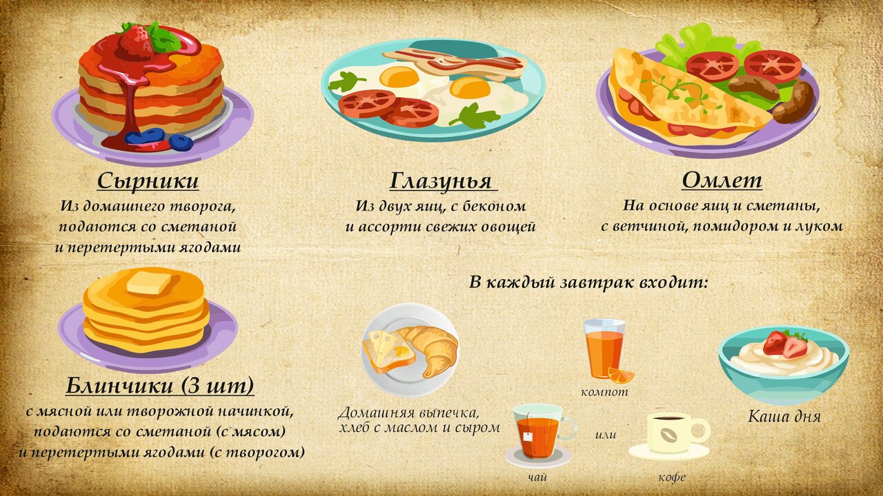 - Вкусные завтраки на выбор.