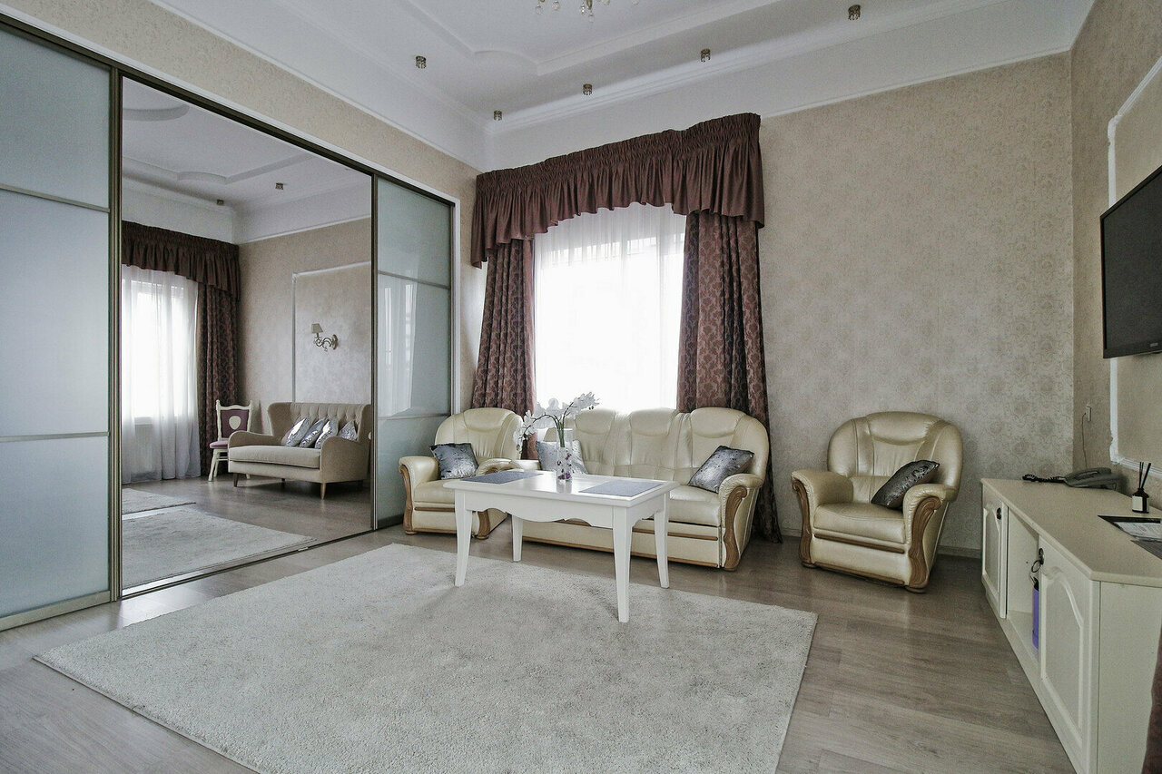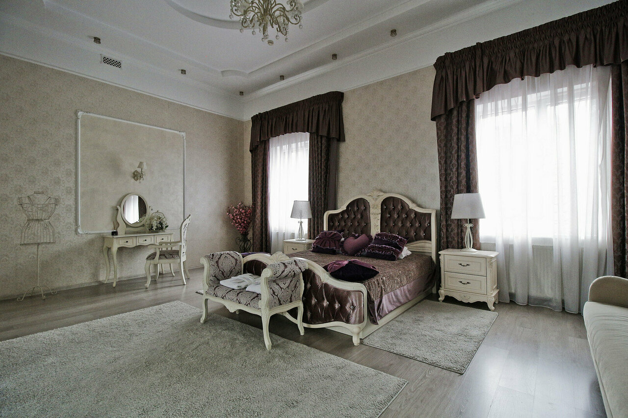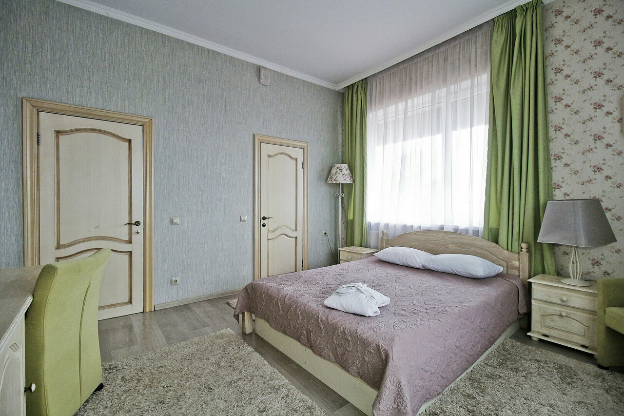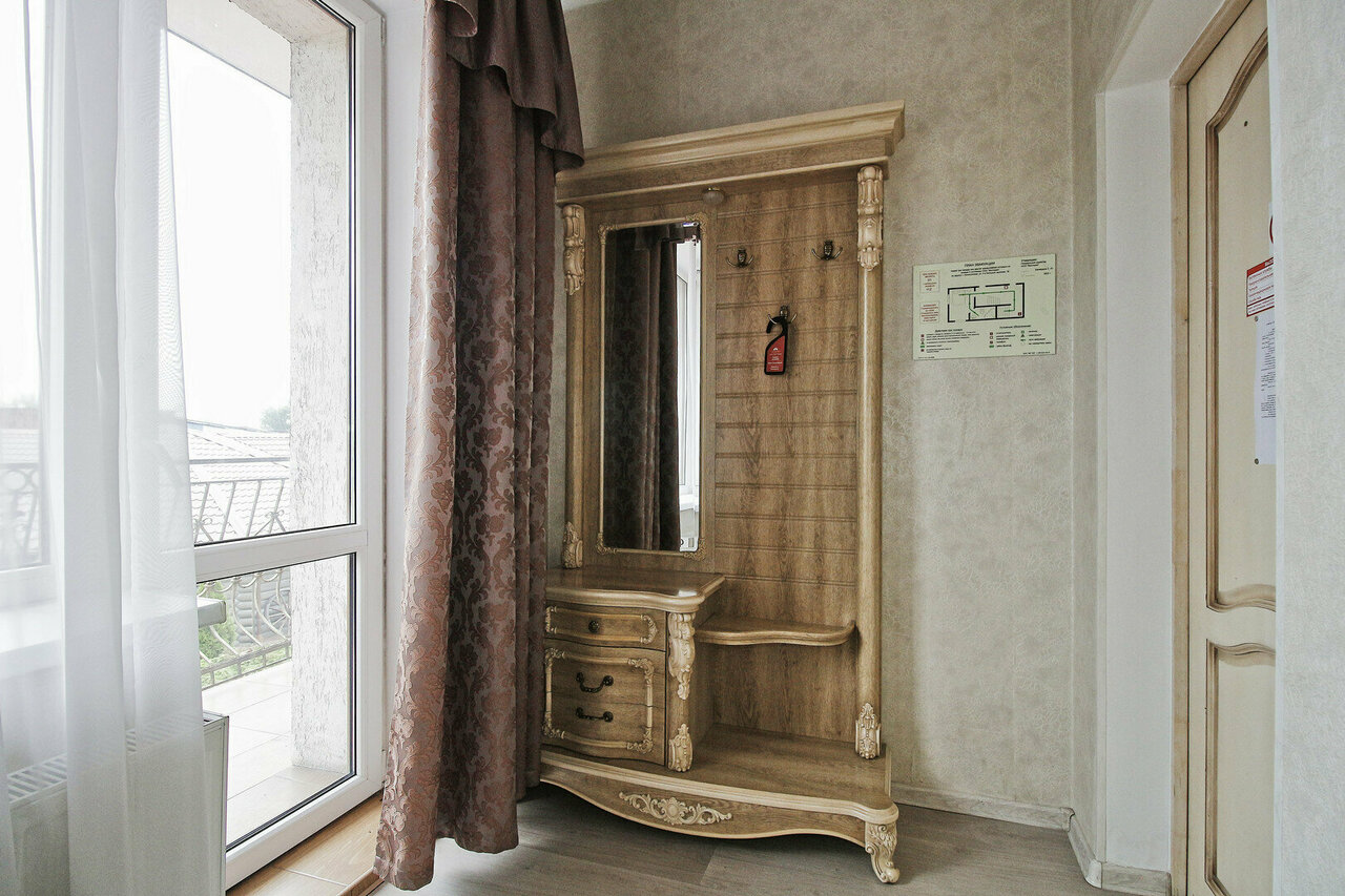 Отель располагает 3 номерами повышенной комфортности, уютными классическими двухместными номерами для размещения 1-го или 2-х человек. Средняя площадь номера –20 кв.м.Просторный и элегантный номер, выполненный в классическом интерьере для комфортно
