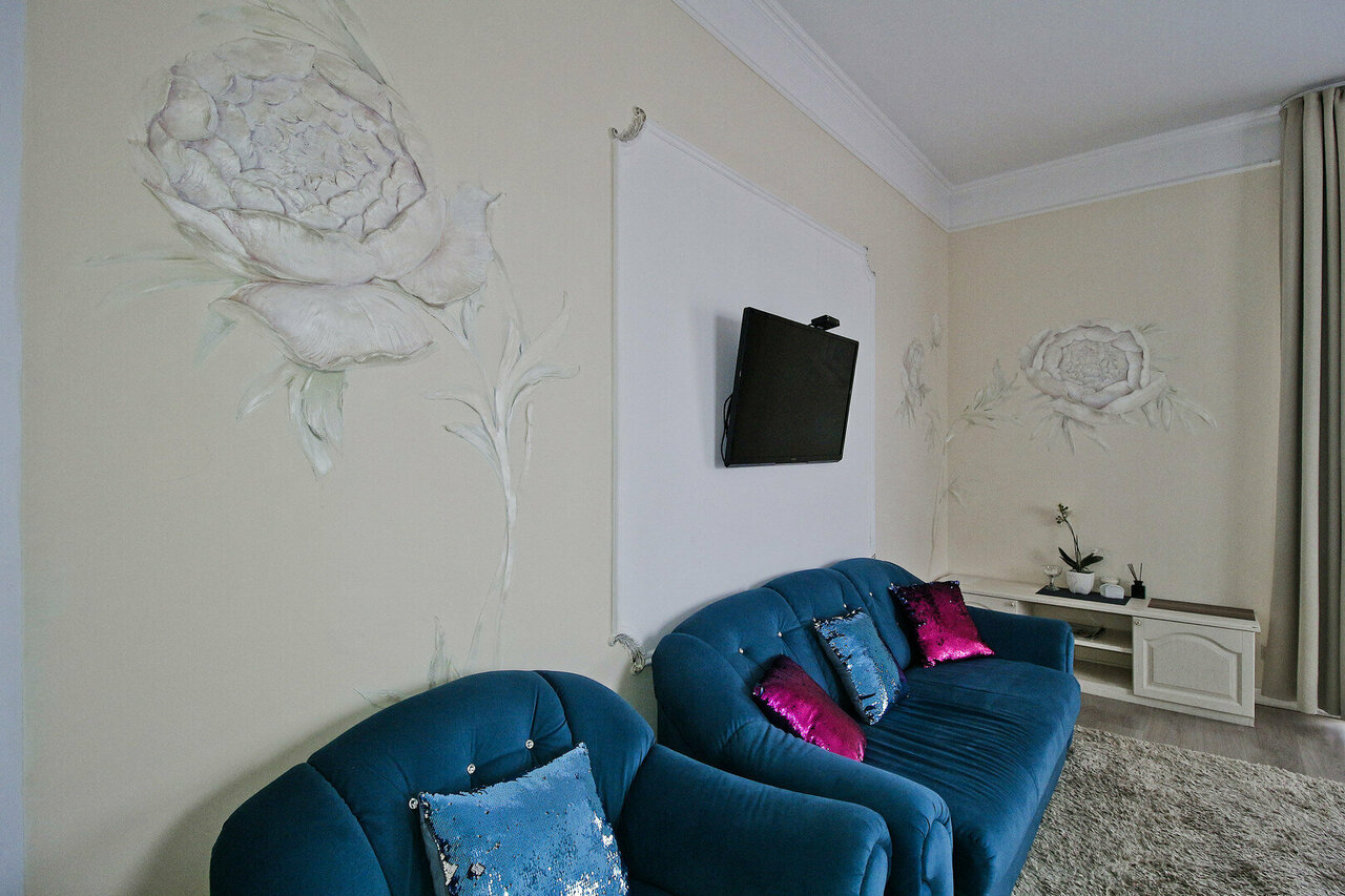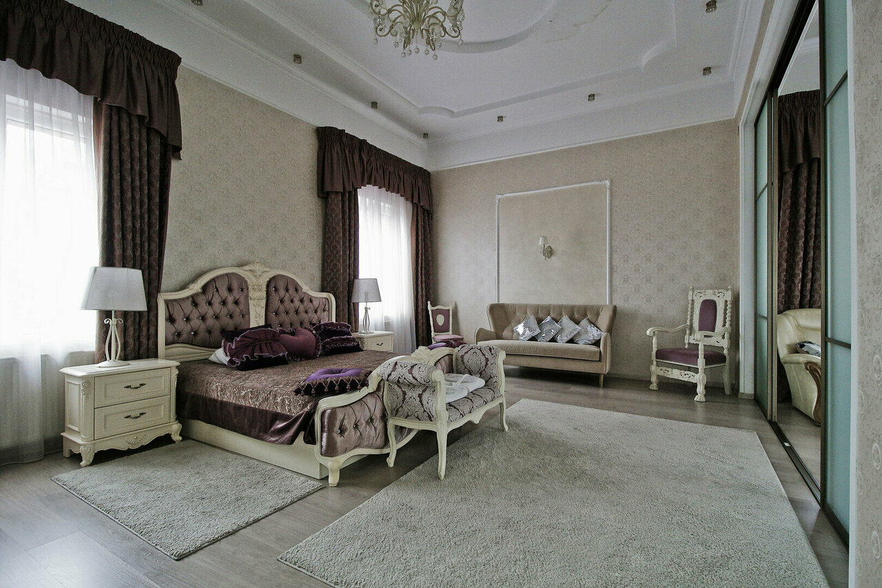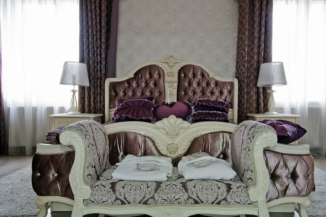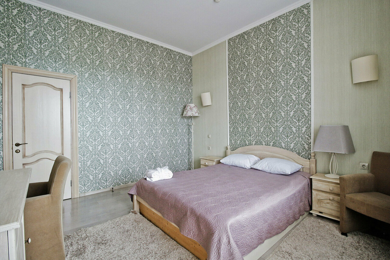 Отель располагает 3 номерами повышенной комфортности, уютными классическими двухместными номерами для размещения 1-го или 2-х человек. Средняя площадь номера –20 кв.м.Просторный и элегантный номер, выполненный в классическом интерьере для комфортно