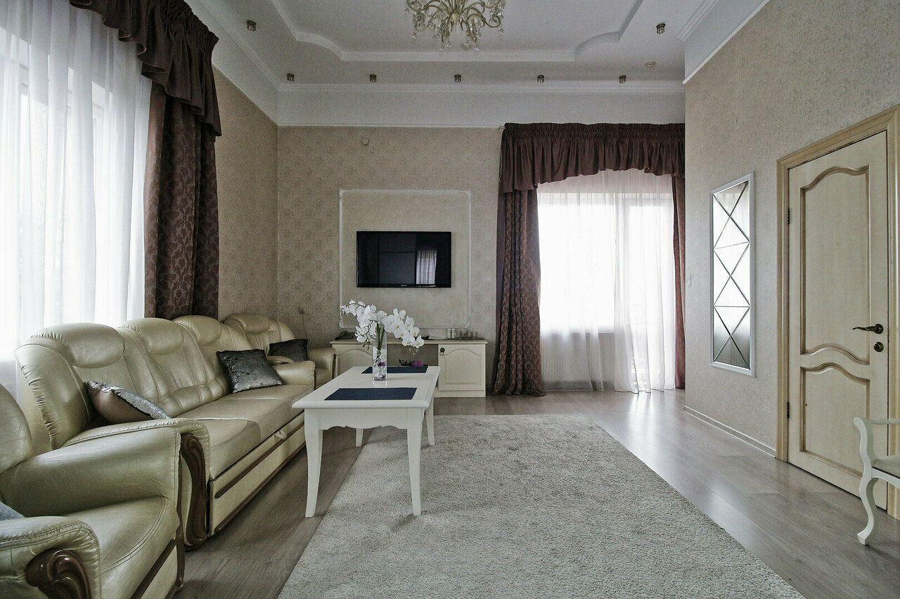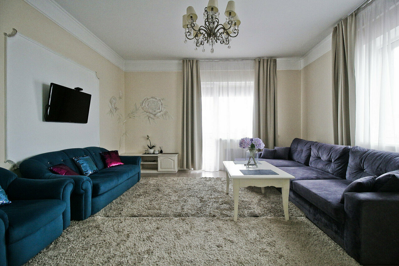 20 кв.ммаксимум 3 гостя1 большая двухспальная или две односпальных кровати + односпальный диван.Собственный с/у с душем .TV, холодильник, чайник,WIFI.Стоимость от 1800 руб/сутки