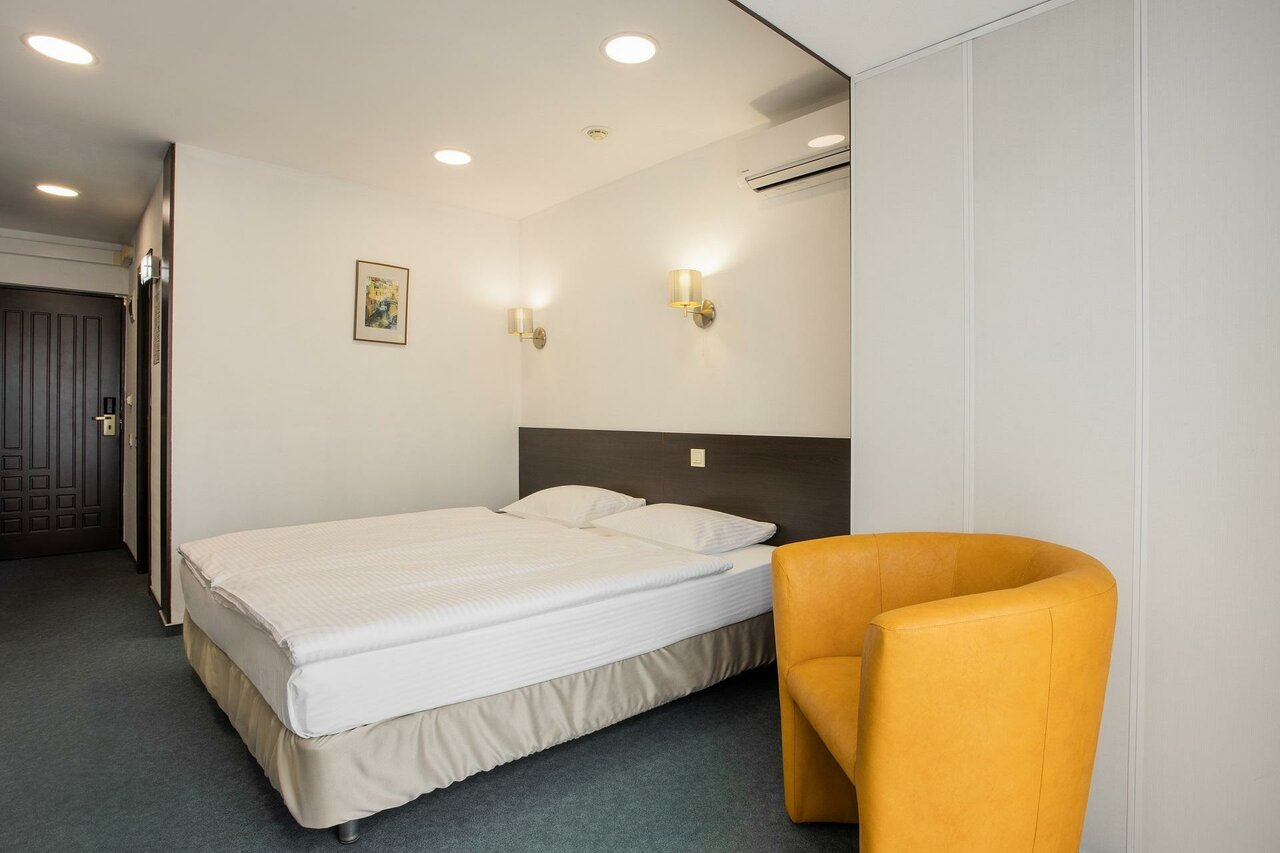 Завтраки на отеля 3 звезды, голодным не будешь, но без разнообразия. Расположение также соответственно звездам отеля — не очень близко к центру, но рядом Верхнее озеро, можно гулять.В номере не хватает розеток, а имеющиеся не удачно расположены, чайник приходится кипятить на полу, телефоны заряжать поочереди.Холодильник в номере-всего лишь шкафчик, не холодит вообще, уровня регулирования холода просто нет.Ресепшин и персогал приветливый.К уборке претензий нет, но кровати не застилают.В целом-обычная трешка.