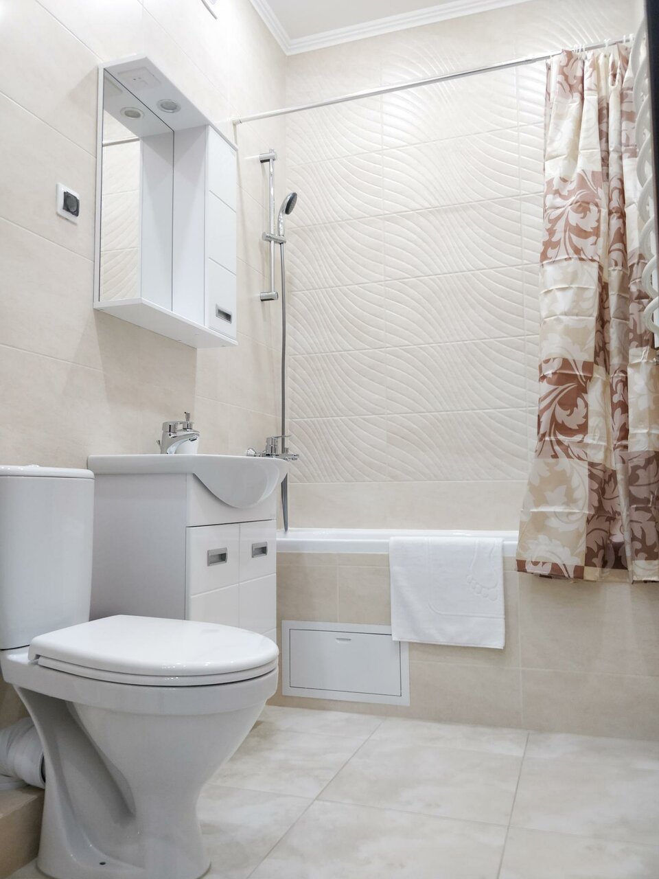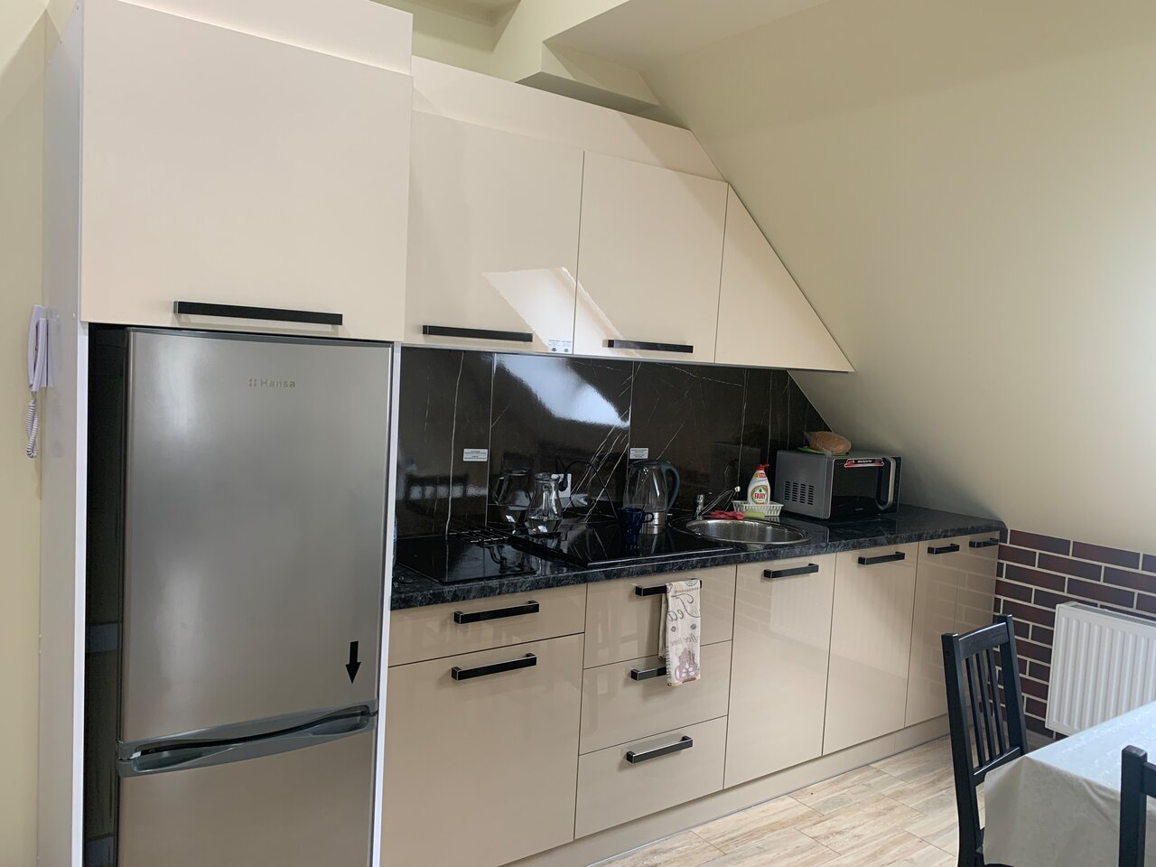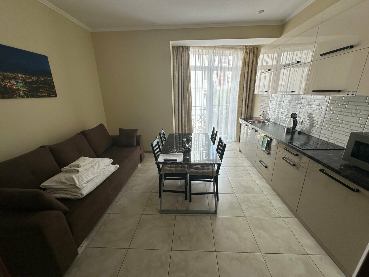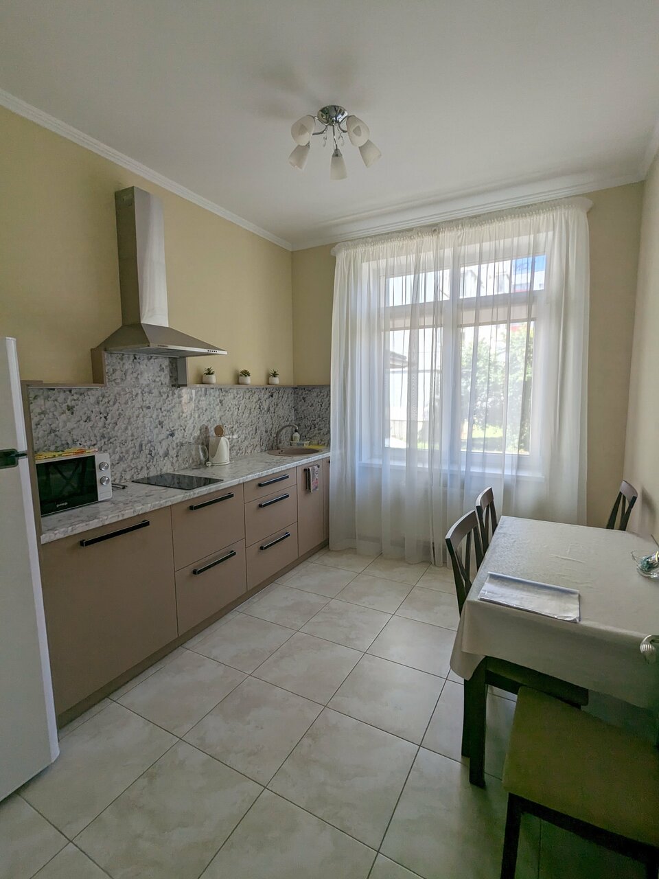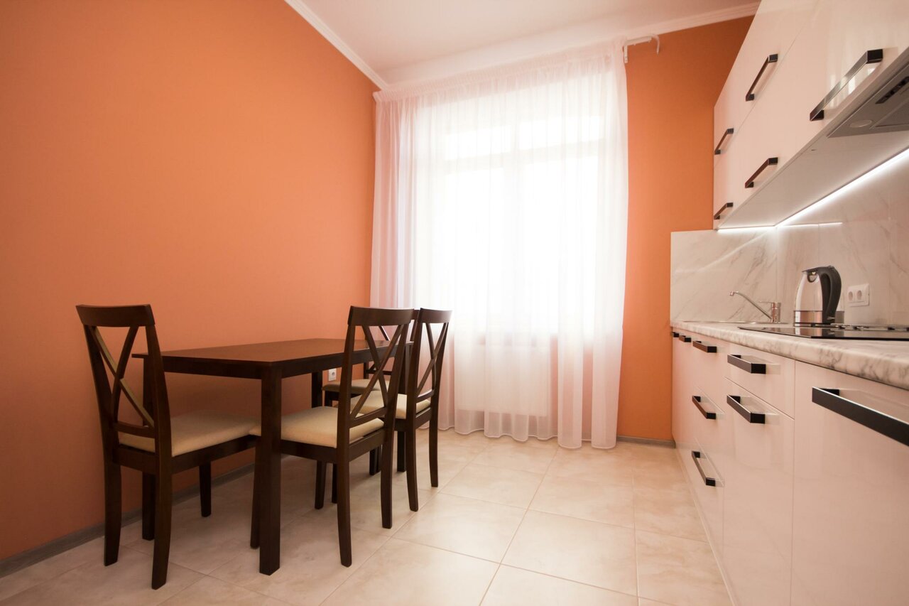 Чисто, уютно, по домашнему. Имеется собственная кухня, холодильник, индукционная варочная панель,микррволновка, телевизор, кондиционер. Убирают каждый день. Постель белоснежная.