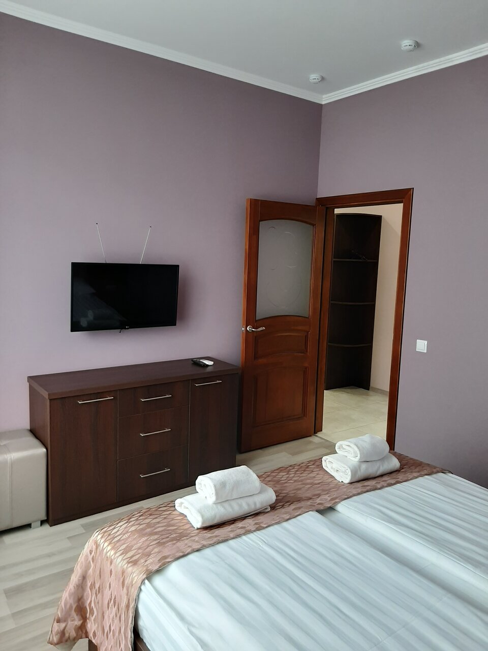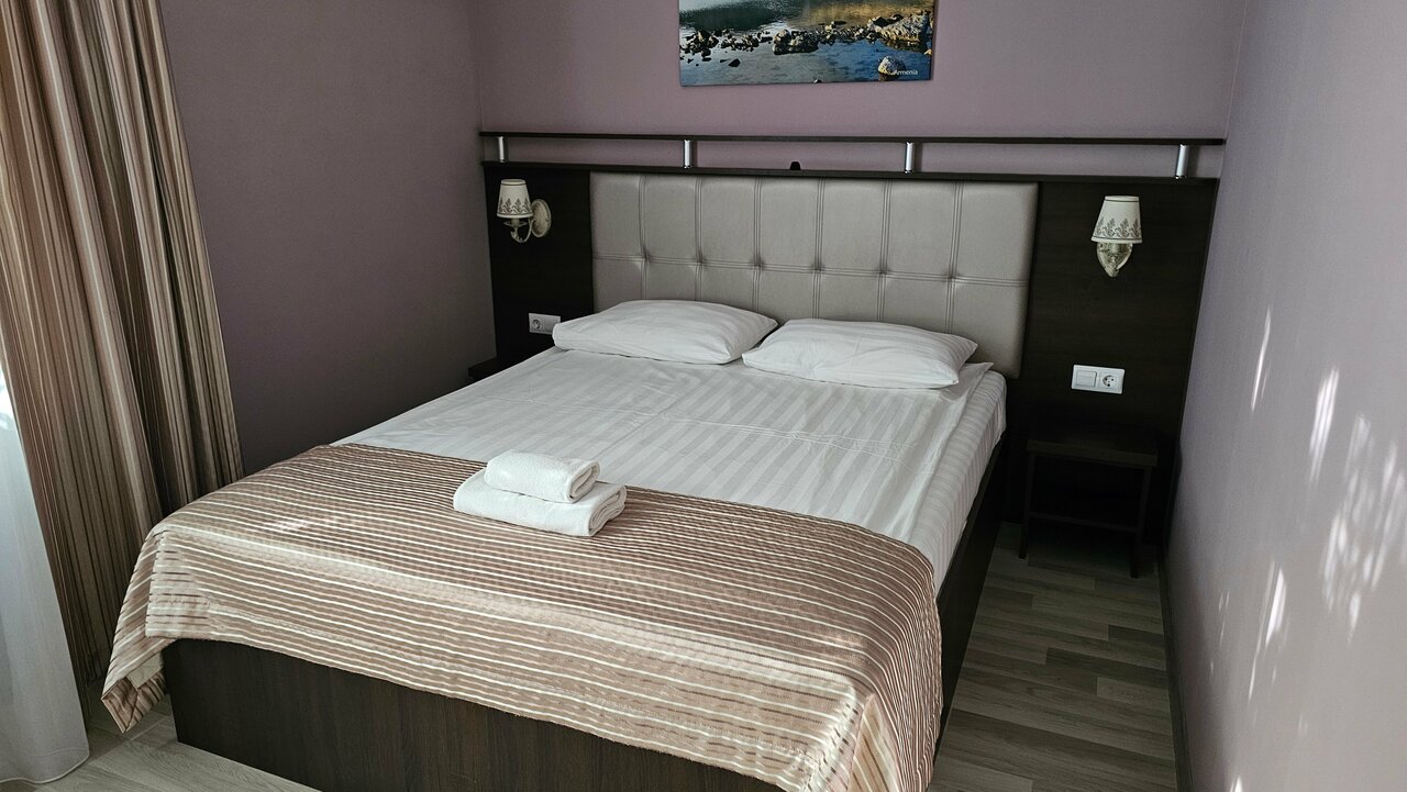 Очень и очень достойное место. Обособленное здание с апартаментами, ресепш, своя парковка. Мы останавливались в двухкомнатном семейном номере. На каждого человека по два полотенца. Чай, сахар соль есть. Все очень чисто. Номер просторный, есть кондиционеры. Вайфай.