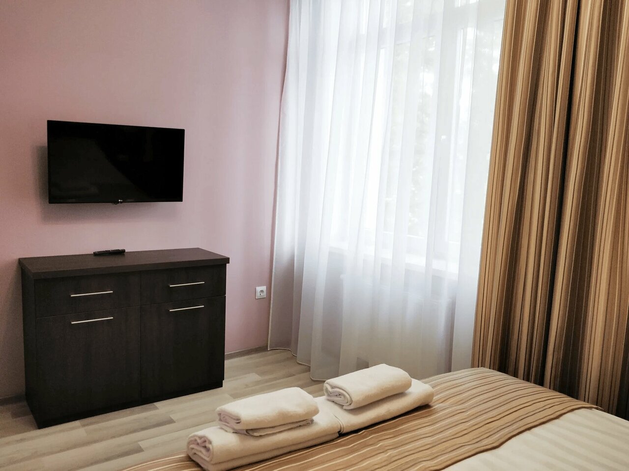 Любимая гостиница,точнее апартаменты. Просторные номера с современной мебелью, приветливый персонал, тишина. Отдельный плюс — наличие ванной( лично для меня как для любителя полежать в кипятке после долгой прогулки). Удобное расположение относительно центра, есть автобусная остановка рядом, такси также приезжает быстро.. + рядом огромный гипермаркет Виктория. Для длительного проживания предусмотрена вся необходимая бытовая техника, посуда, кулеры на этаже. Рекомендую!