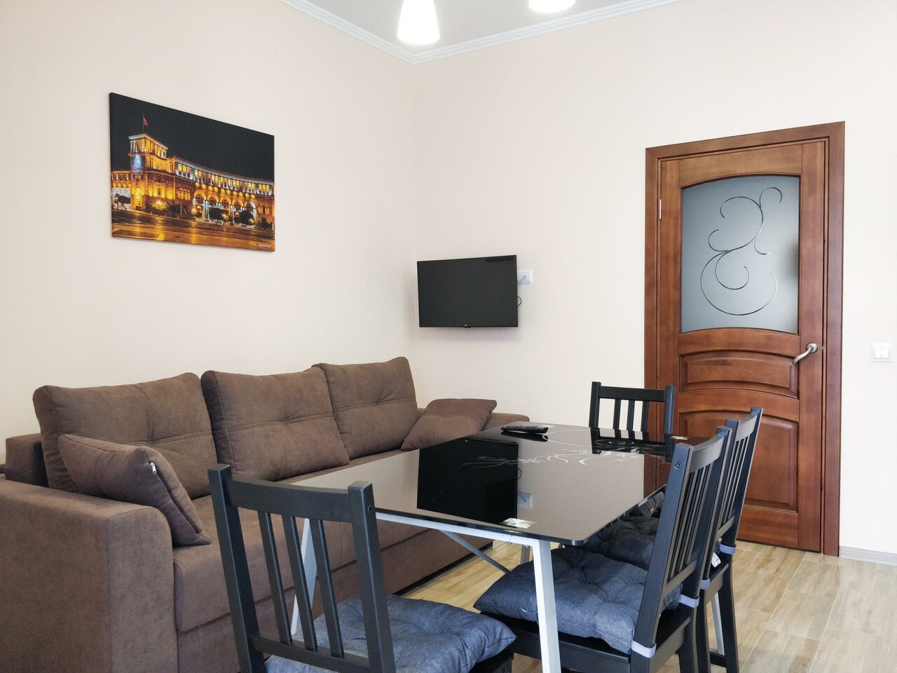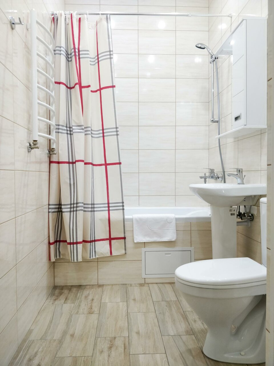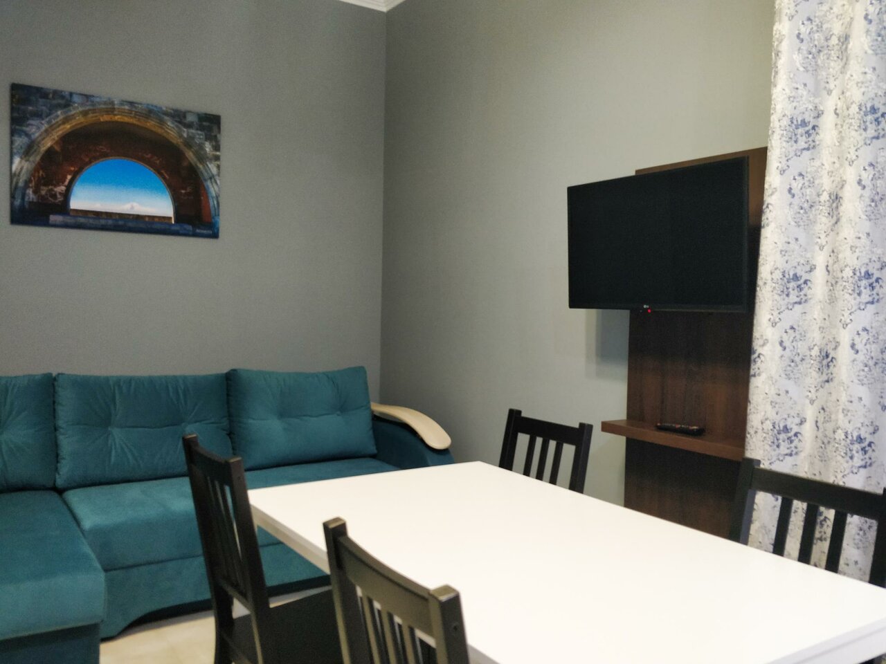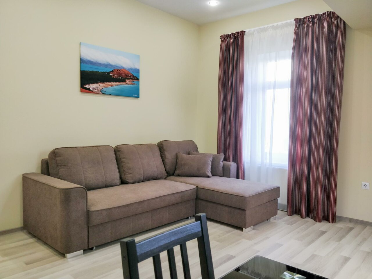 Хороший вариант для размещения средней удалённости от центра города. В коридоре номера установлен тёплый пол. Есть кухня со всем необходимым. Чисто и аккуратно.