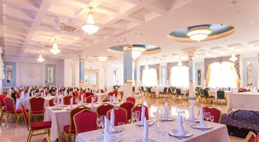В самом отеле не были, но были у них в сауне. Сауна не понравилась: во первых холодно, в парной света нет, дверь скрипит ужасно. 2). Банкетный стол прям возле бассейна всё в воде. В самом бассейне огромная острая дыра. В общем не понравилось. Больше не пойдём.