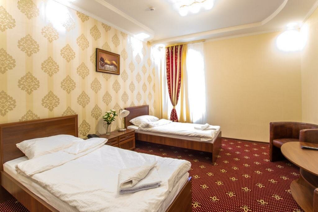 Останавливались с дочкой в этом отеле на две ночи. Впечатления от отеля так себе. Не рекомендую. 1. Номер неуютный, обшарпаный 2. Отель находится в промзоне, пешком гулять точно не захочется. 3. Лифта нет. Если дадут номер на третьем этаже — будьте готовы тащить свой чемодан сами по довольно высокой крутой лестнице. 4. Кондиционеров нет. Летом в номере душно, откроете окно-летят комары. 5. Слышимость такая, как будто живете с соседями в одном номере. Прекрасно слышны все разговоры, даже не напрягая слух. 6. В целом чисто, но под кроватью и по углам клочья пыли. На картинках все очень нарядно, но почему мы оказались в этом чулане?! за приличные деньги, между прочим..