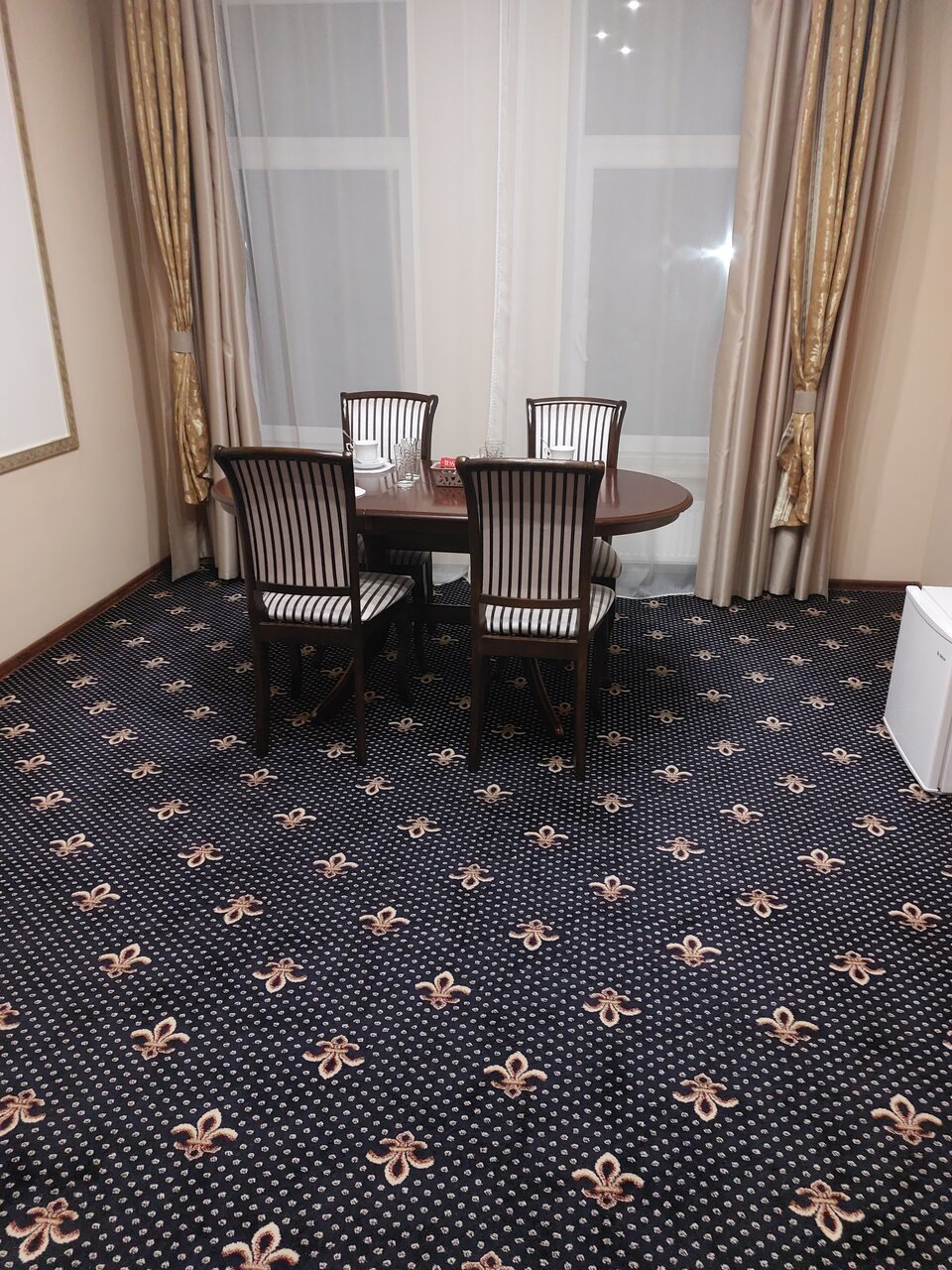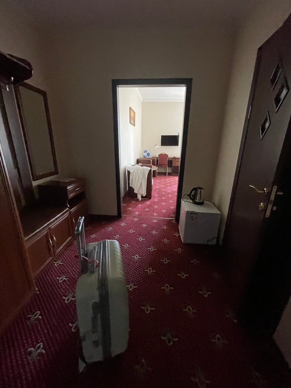 Большие номера, но просто отвратительная звукоизоляция. Было слышно ВСЕХ соседей вокруг. Кто в туалете, кто сексом занимается, кто пьёт и орёт песни. А ощущение складывалось, что все эти события происходят в твоём номере одновременно. Персонал отзывчивый. Однако торопили с выездом. Даже в Москве в 5* гостинице позвонили лишь в 13 часов вежливо поинтересовавшись временем отъезда. Тут без 10 минут 12 уже звонили с напоминанием. С чистотой в номерах тоже не всё идеально. Т.е. в центре комнаты и видимой зоны там чисто. Но в углах, за шторами, под столиком и т.д. там скомканная пыль, мусор. Постельное белье и полотенце чистые. Парковка небольшая имеется.