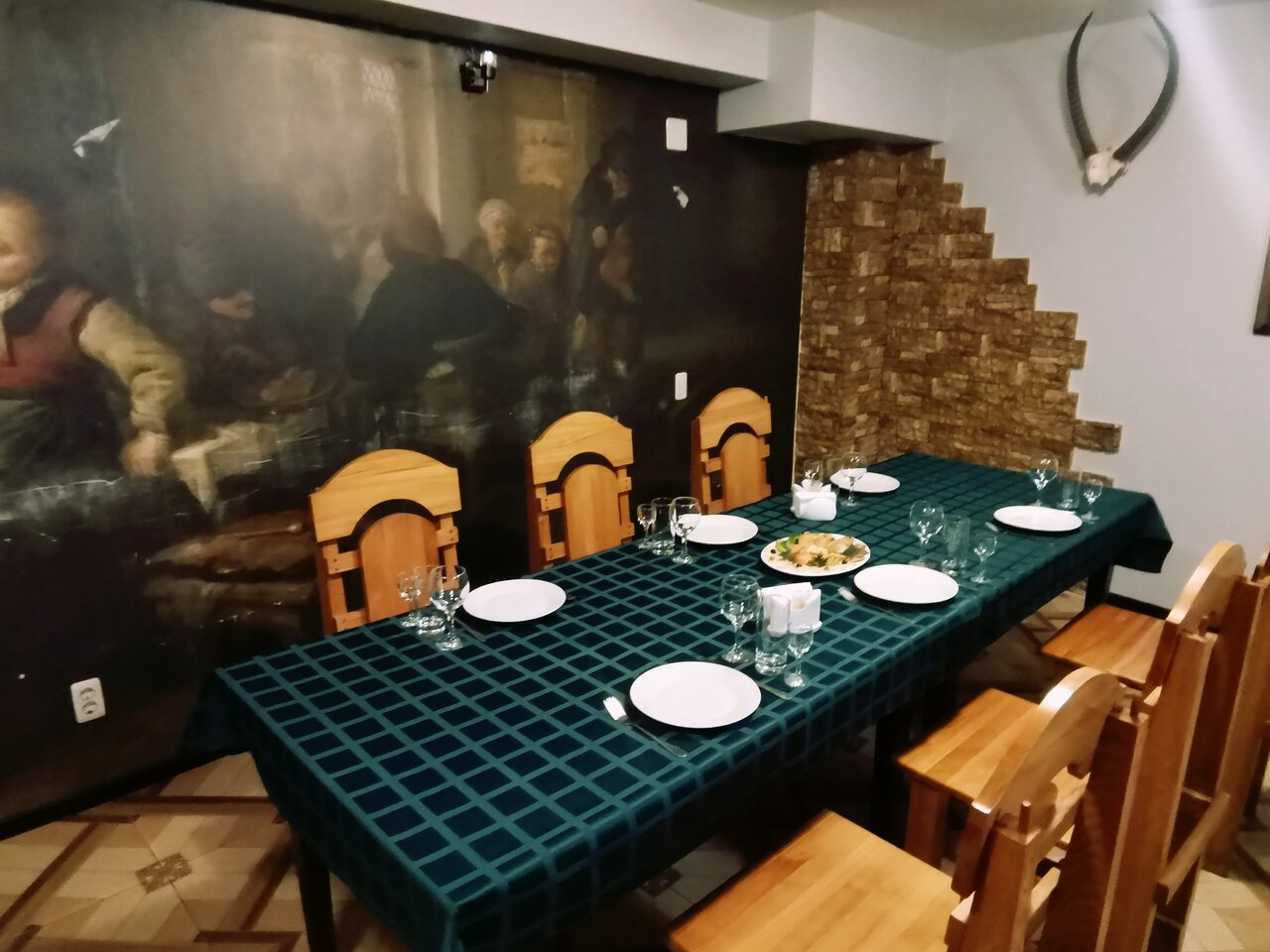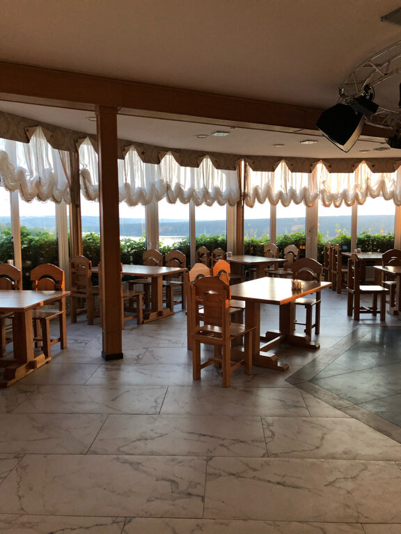 Про гостиницу не скажу, заходил в ресторан. Неудобные крутые опасные ступеньки. Вид из панорамных окон роскошный. Мебель массивная деревянная женская. Видимо, чтобы не засиживались. Меню столовке, советская кухня абсолютно без изюминки. Понятно почему зал пустой.